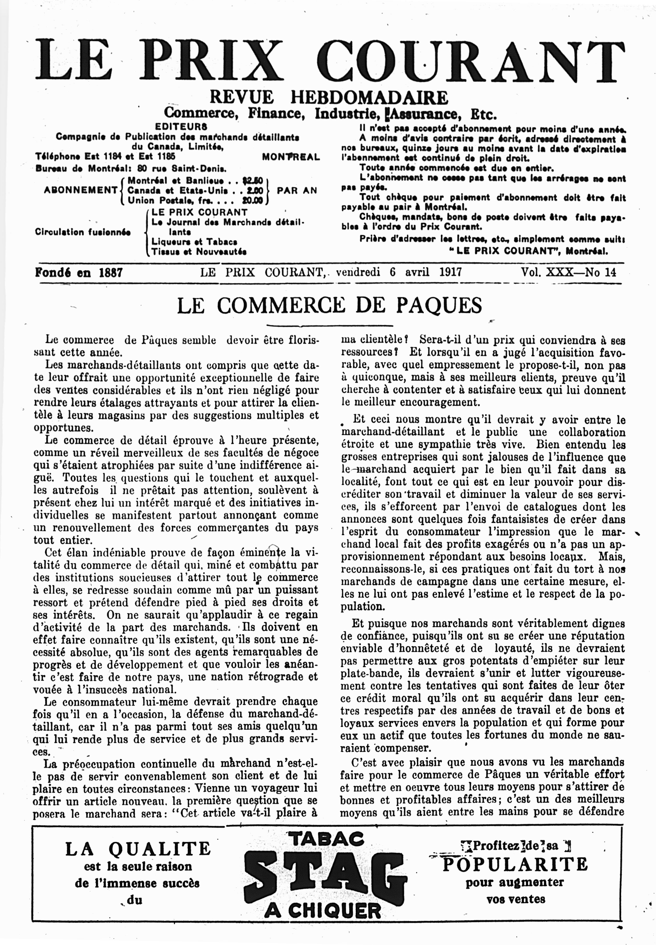 Le prix courant : Vol. 30, no 14 (6 avril 1917)
