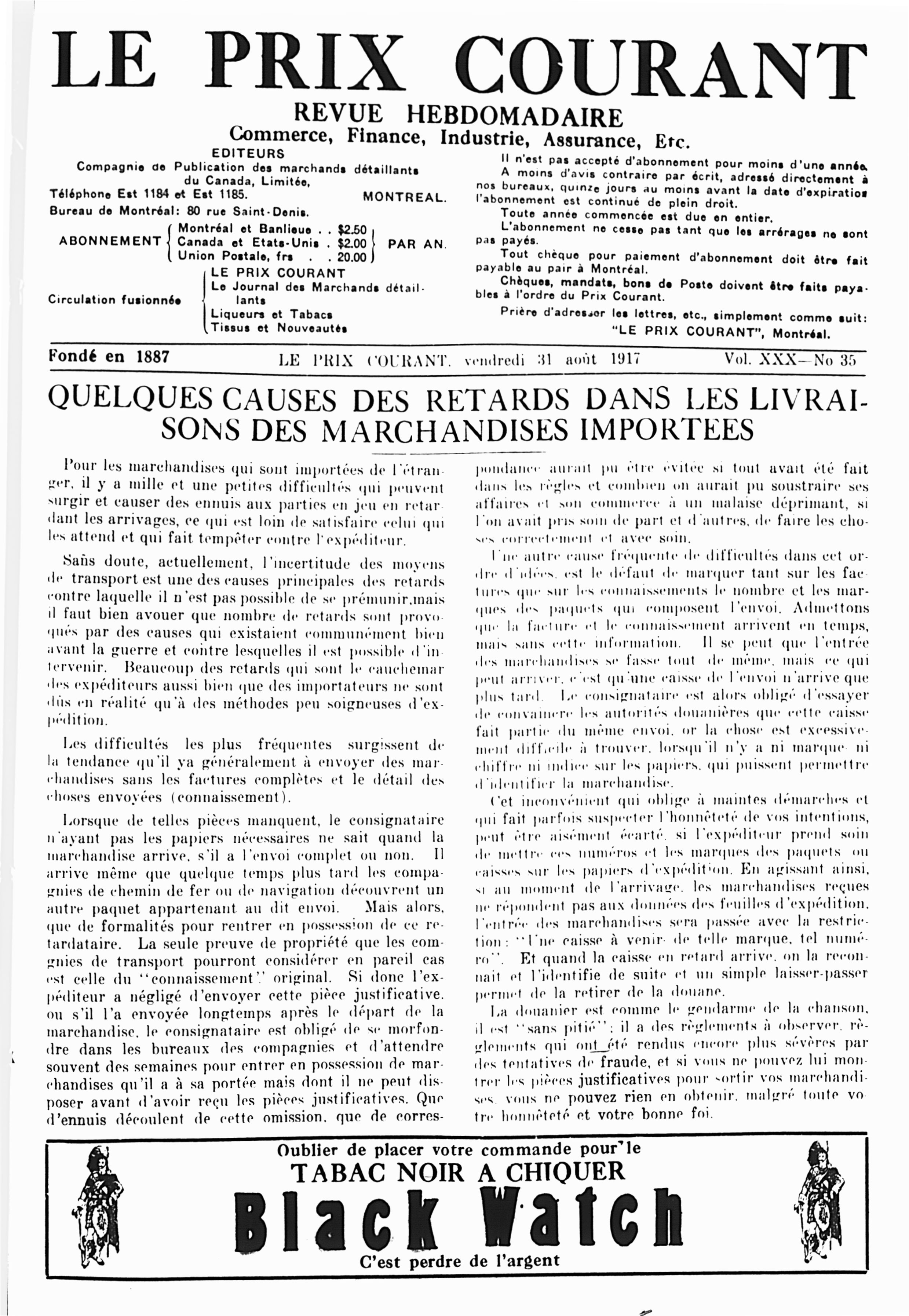 Le prix courant : Vol. 30, no 35 (31 août 1917)