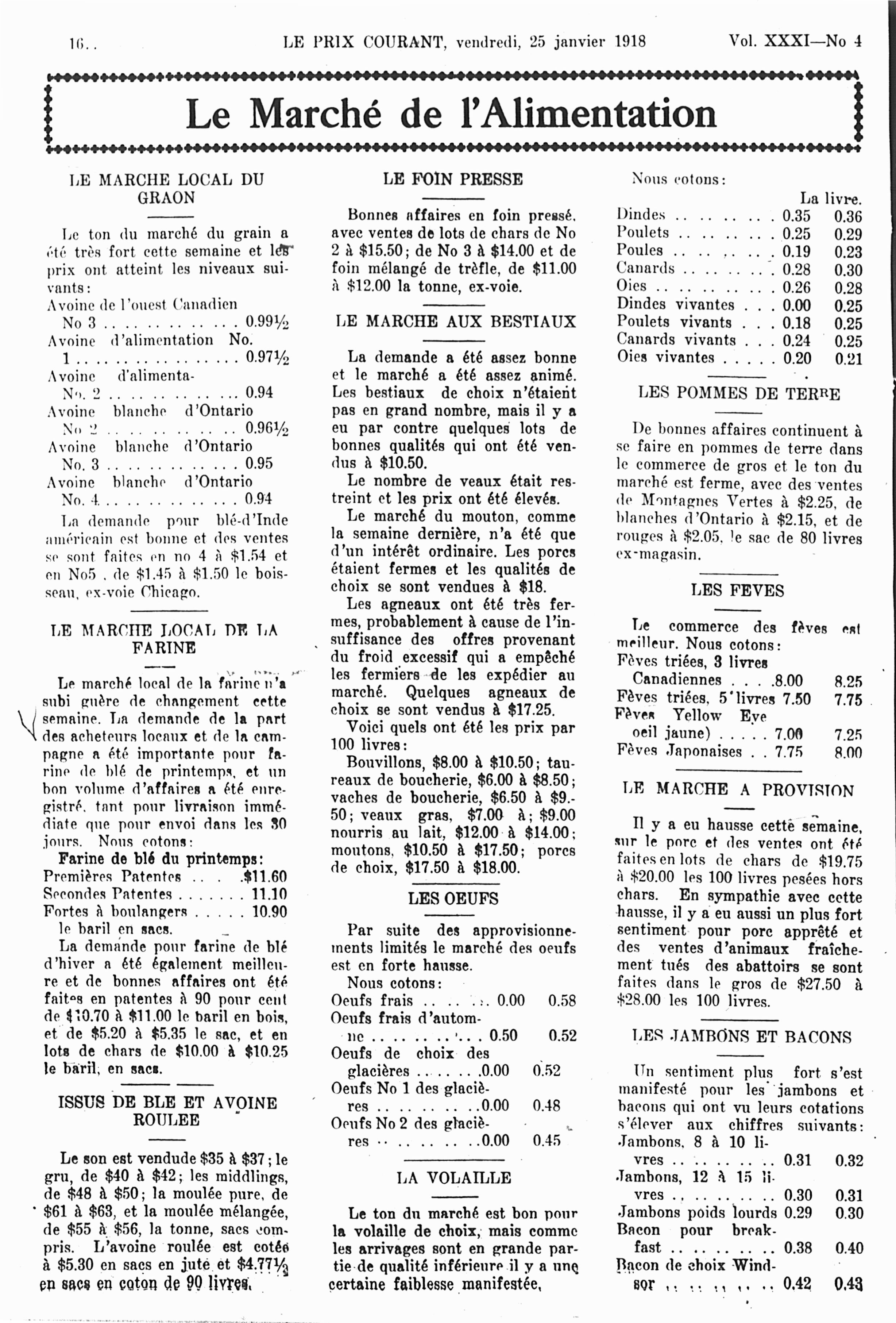 Le prix courant : Vol. 31, no 4 (25 janv. 1918)
