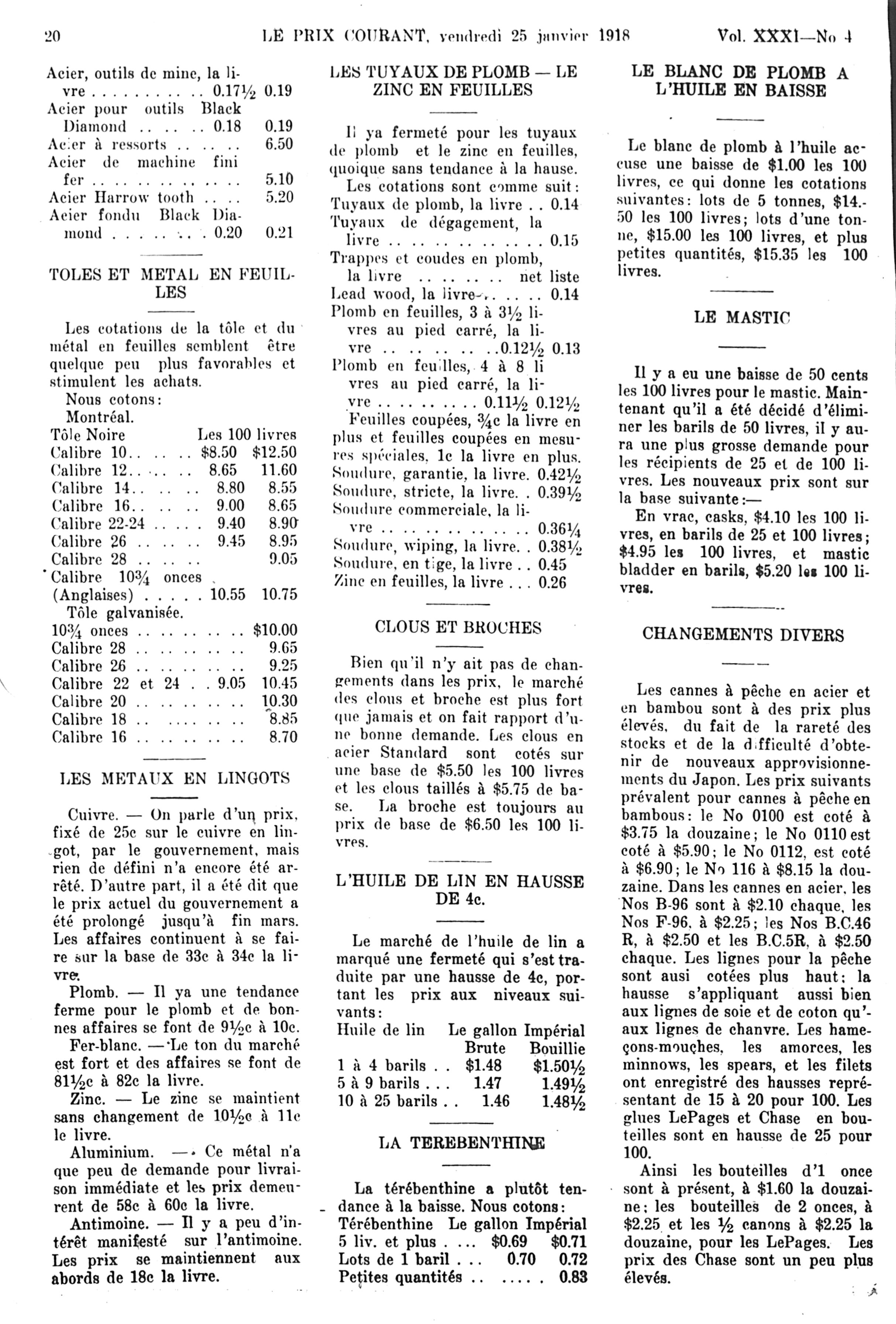 Le prix courant : Vol. 31, no 4 (25 janv. 1918)