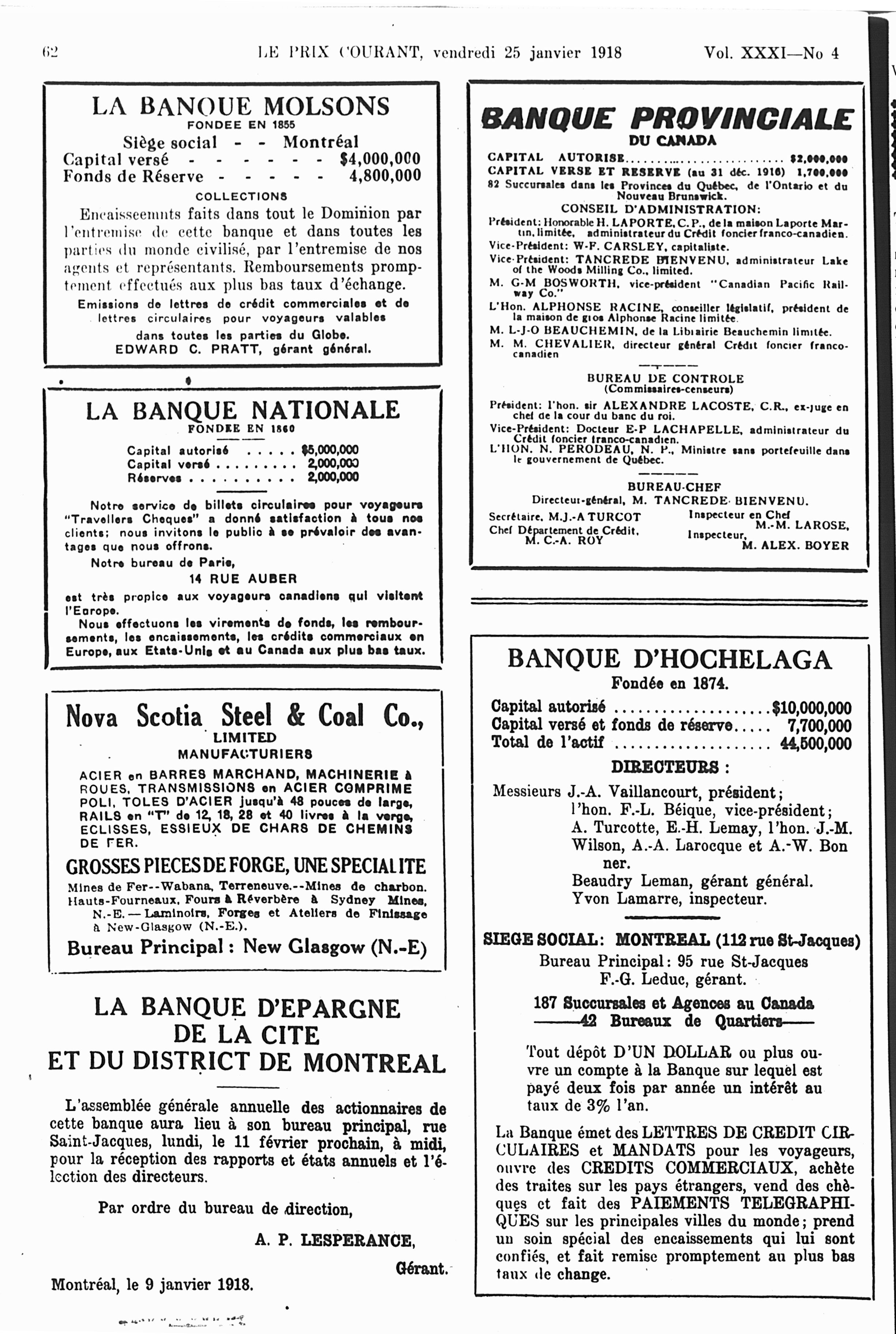 Le prix courant : Vol. 31, no 4 (25 janv. 1918)