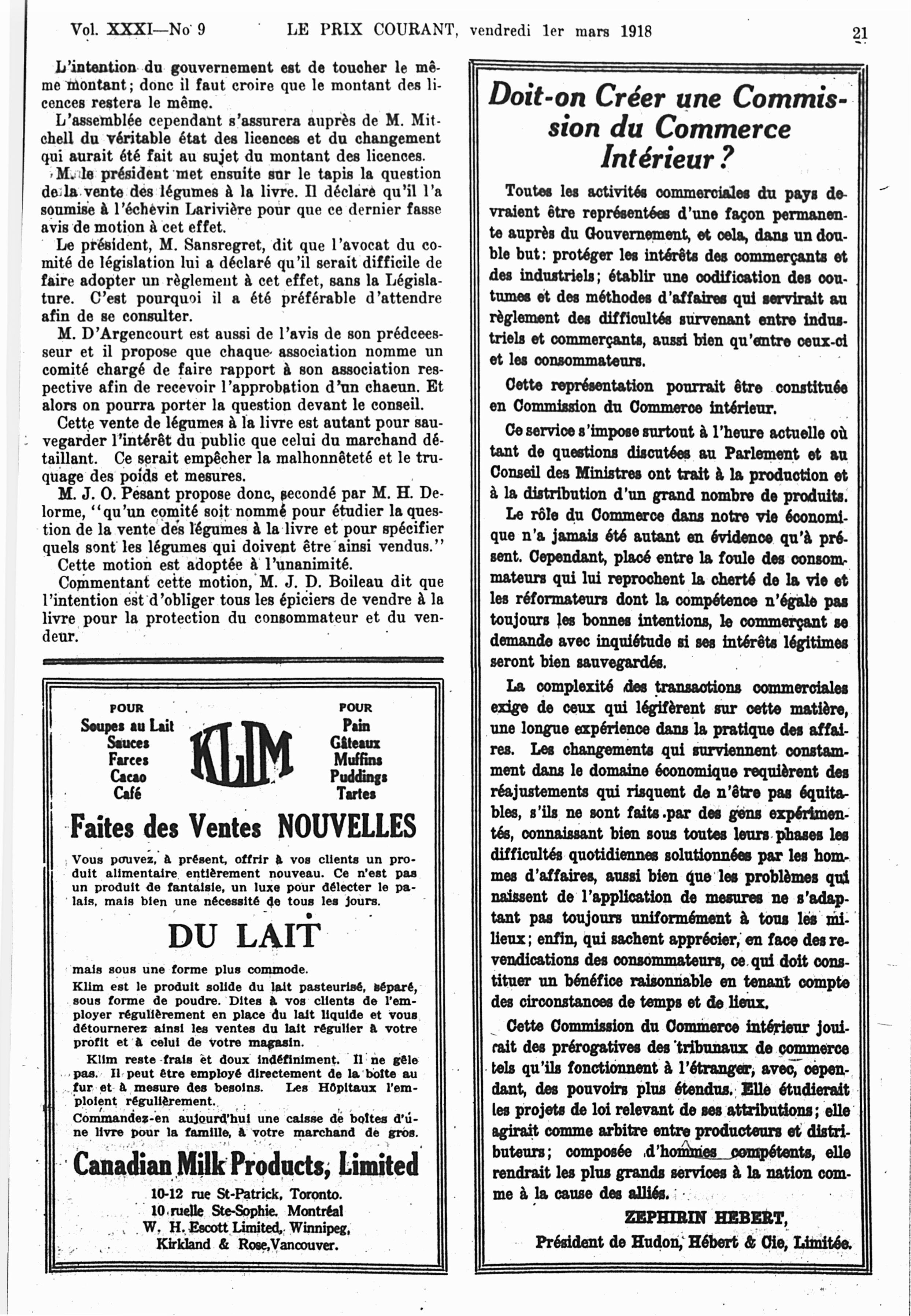 Le prix courant : Vol. 31, no 9 (1 mars 1918)