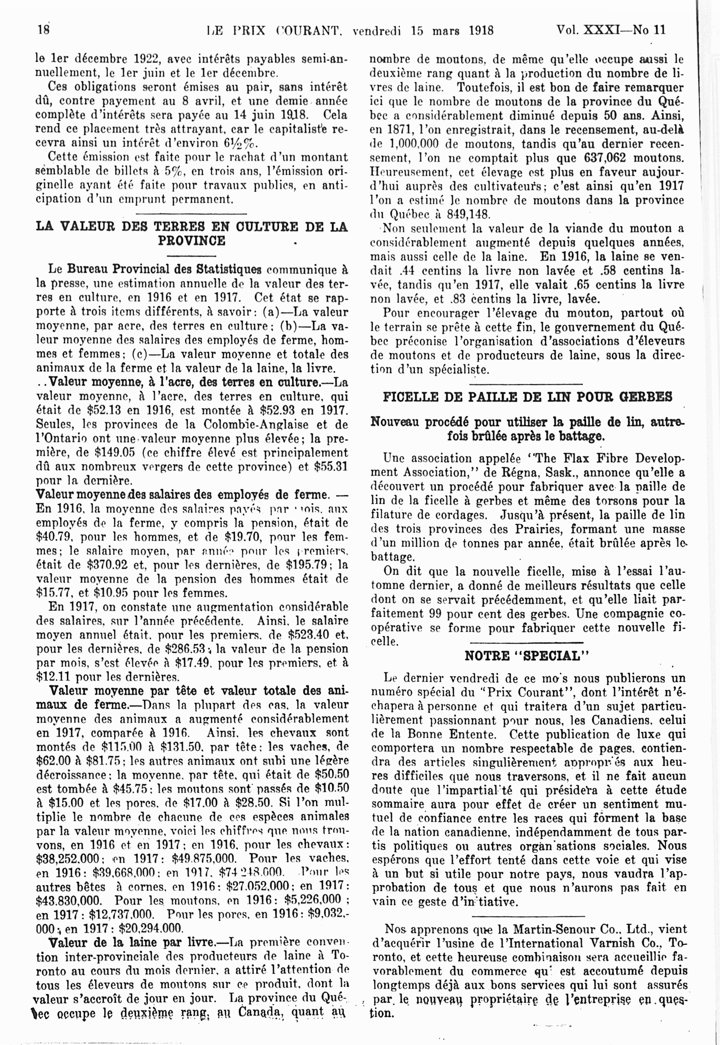 Le prix courant : Vol. 31, no 11 (15 mars 1918)