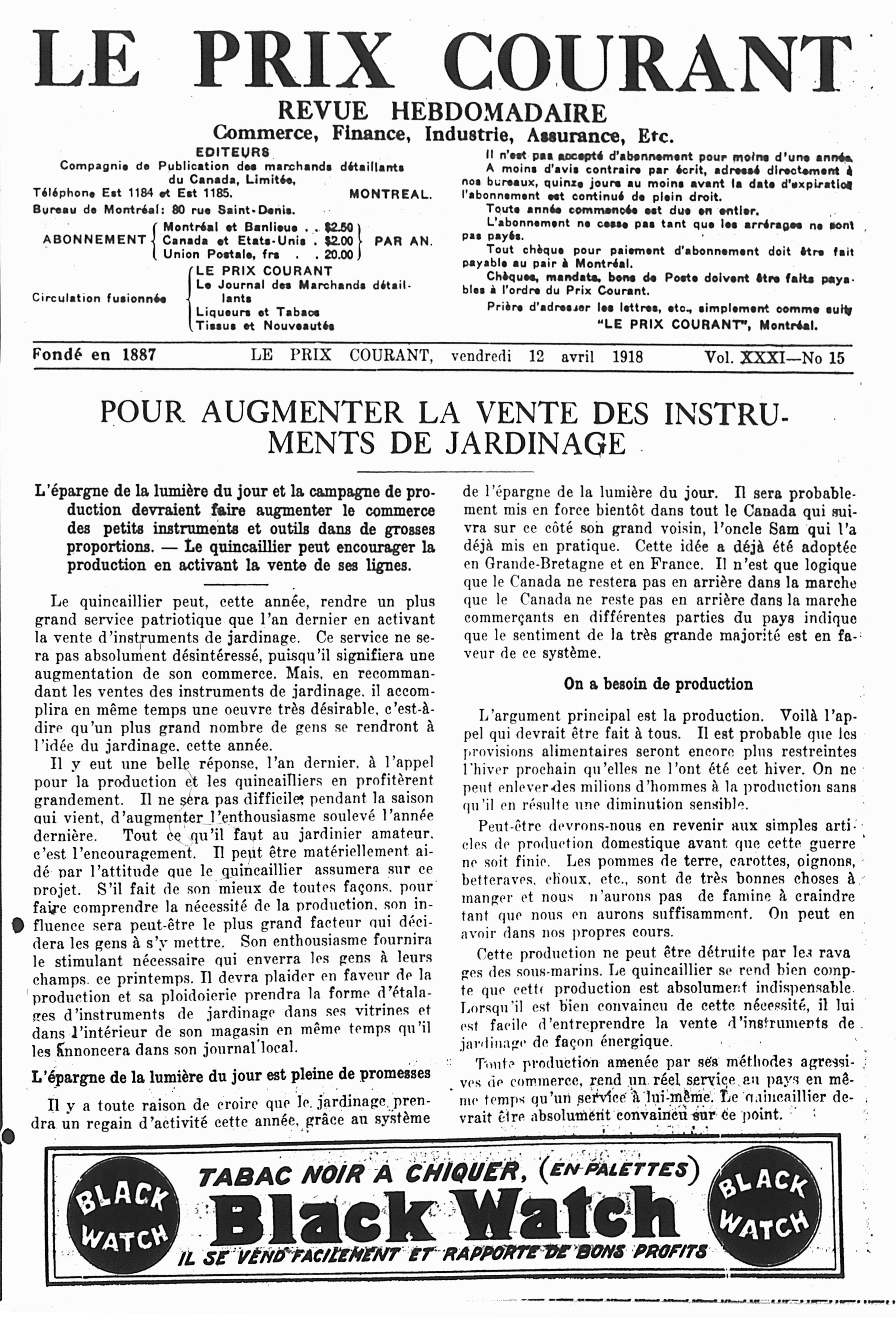 Le prix courant : Vol. 31, no 15 (12 avril 1918)