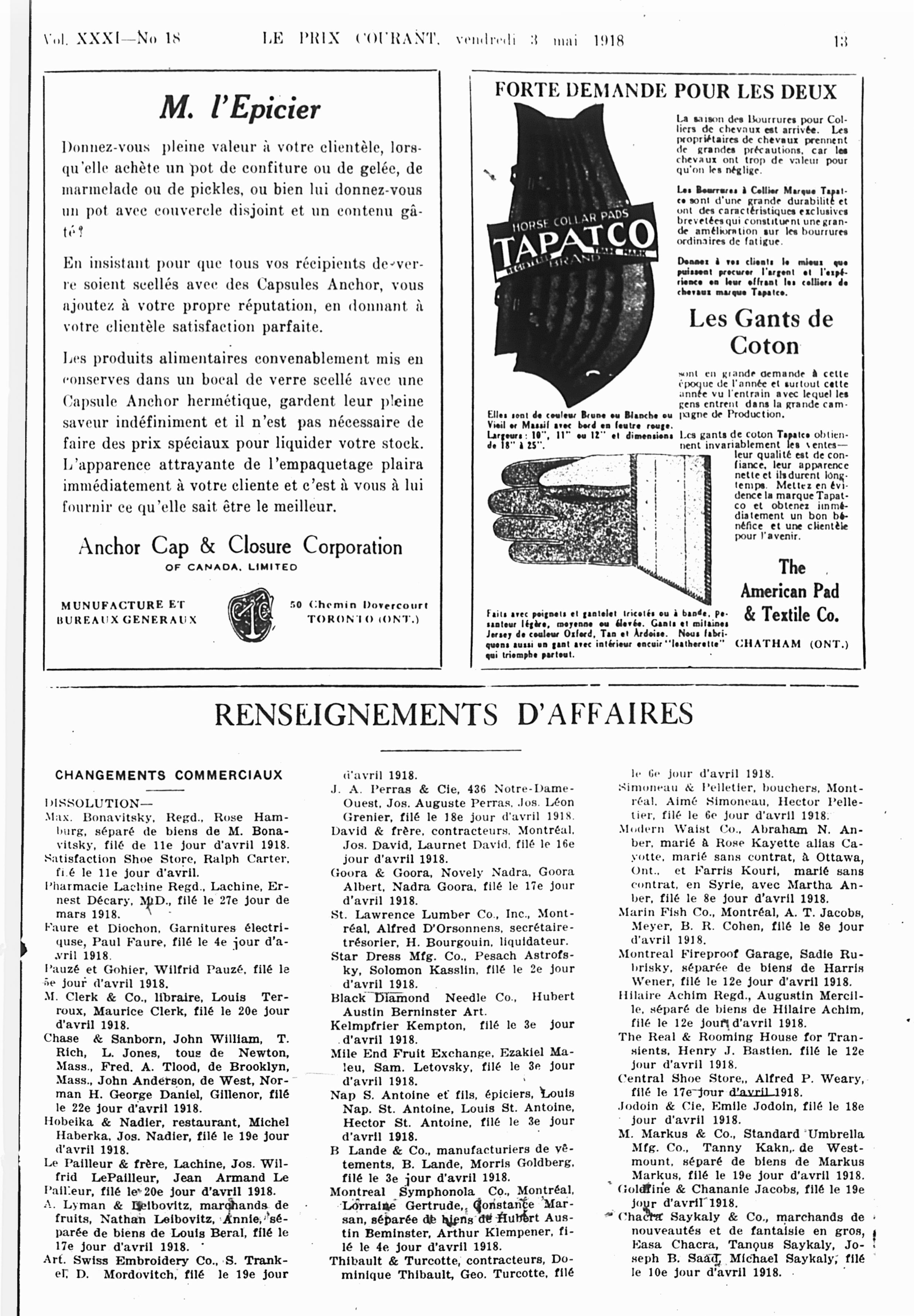 Le prix courant : Vol. 31, no 18 (3 mai 1918)