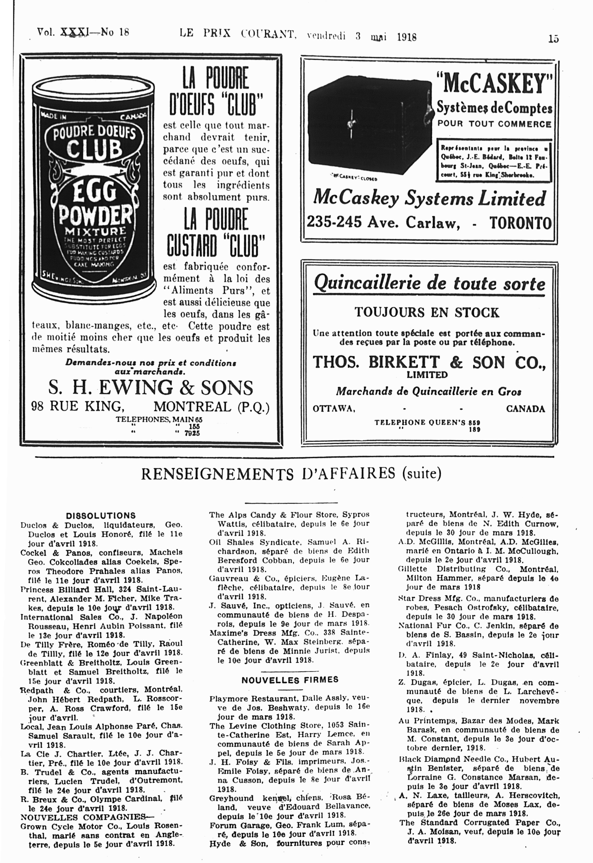 Le prix courant : Vol. 31, no 18 (3 mai 1918)