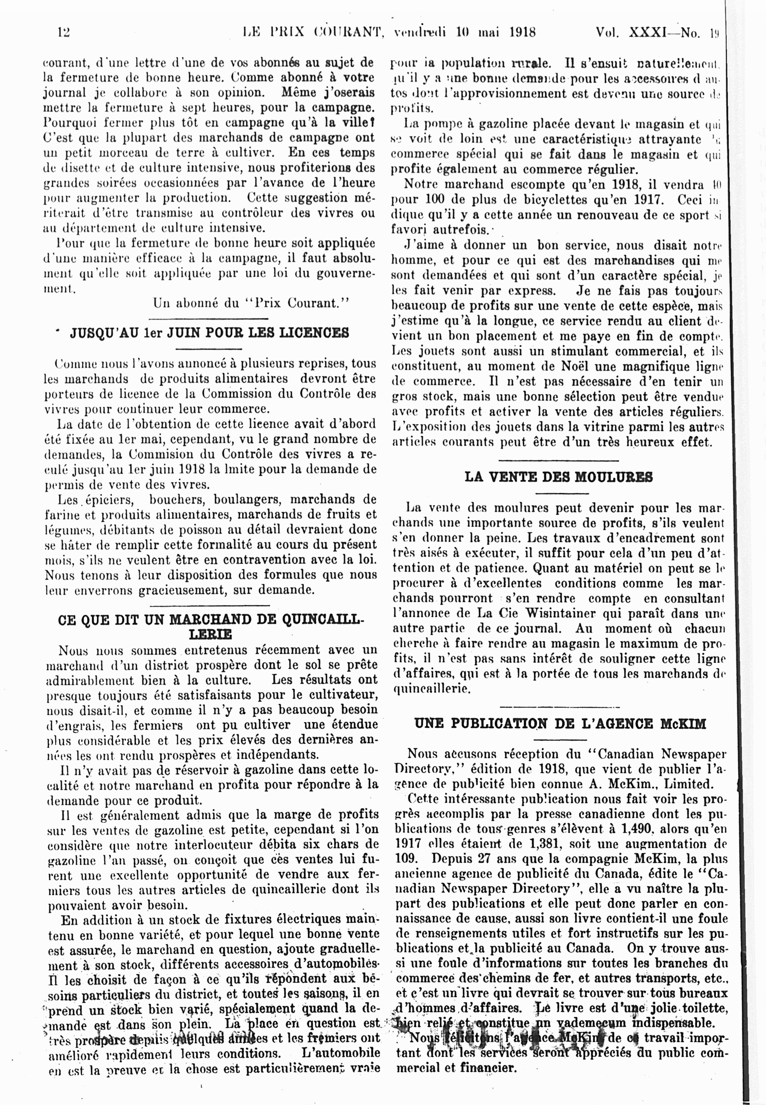 Le prix courant : Vol. 31, no 19 (10 mai 1918)