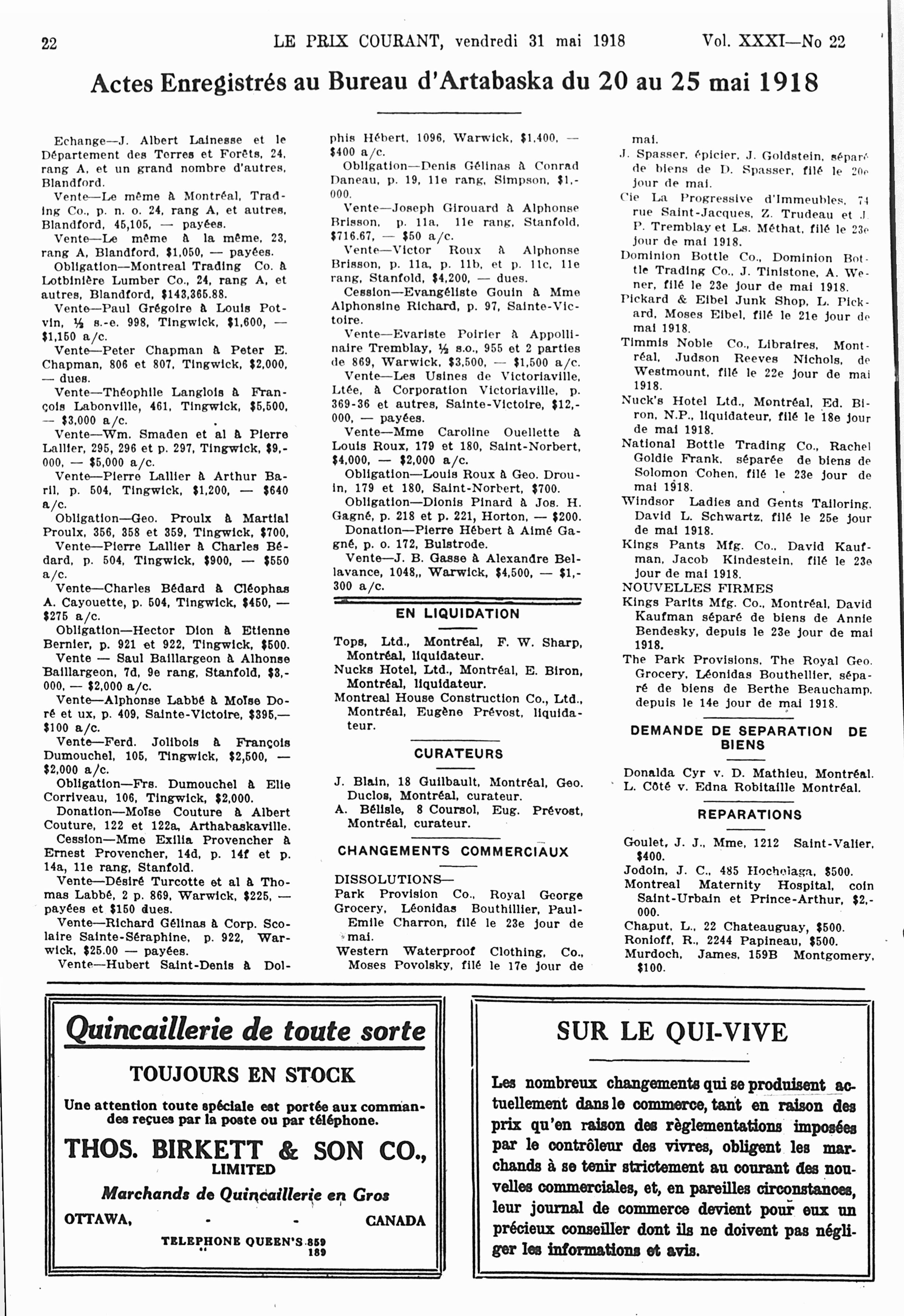 Le prix courant : Vol. 31, no 22 (31 mai 1918)