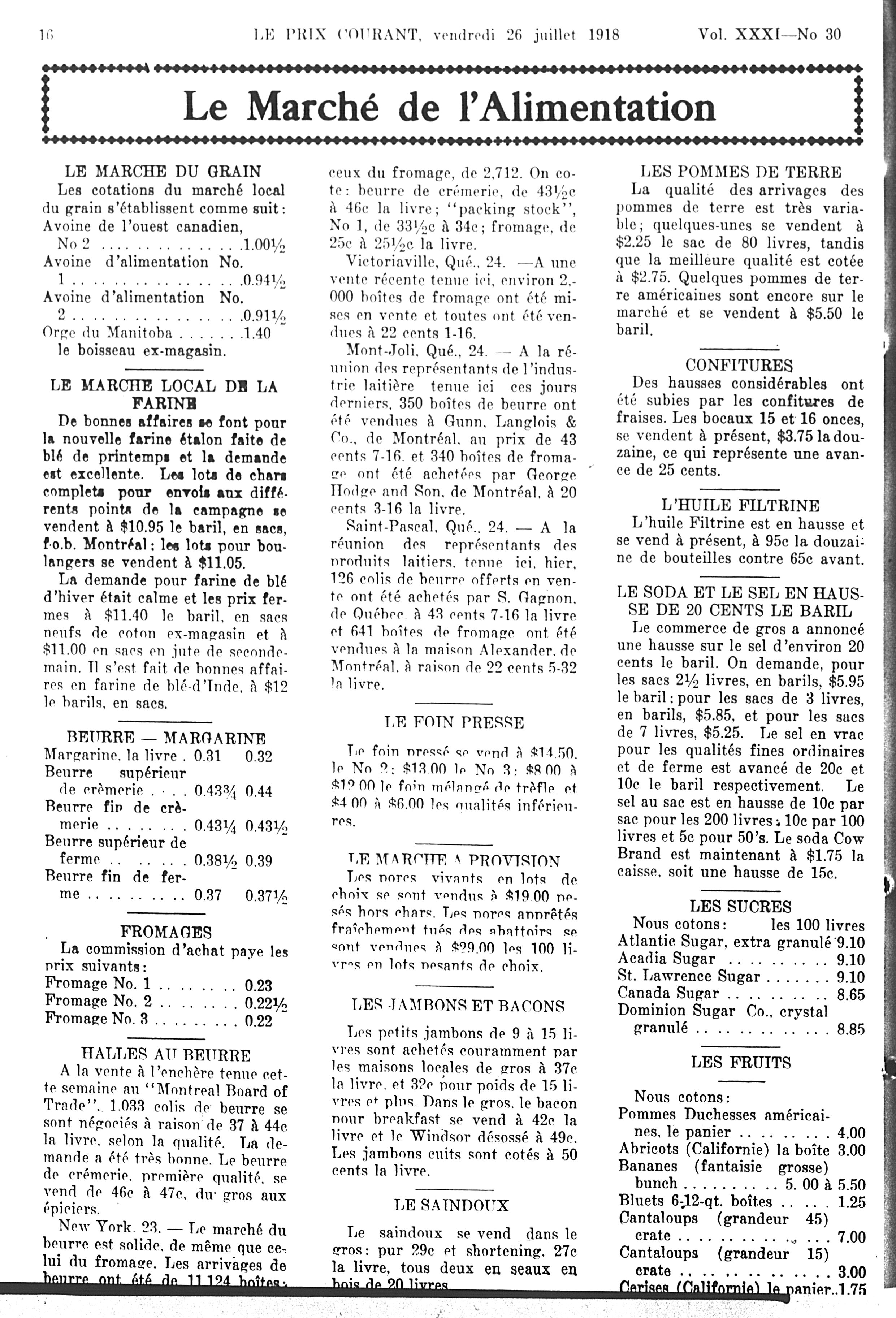 Le prix courant : Vol. 31, no 30 (26 juil. 1918)