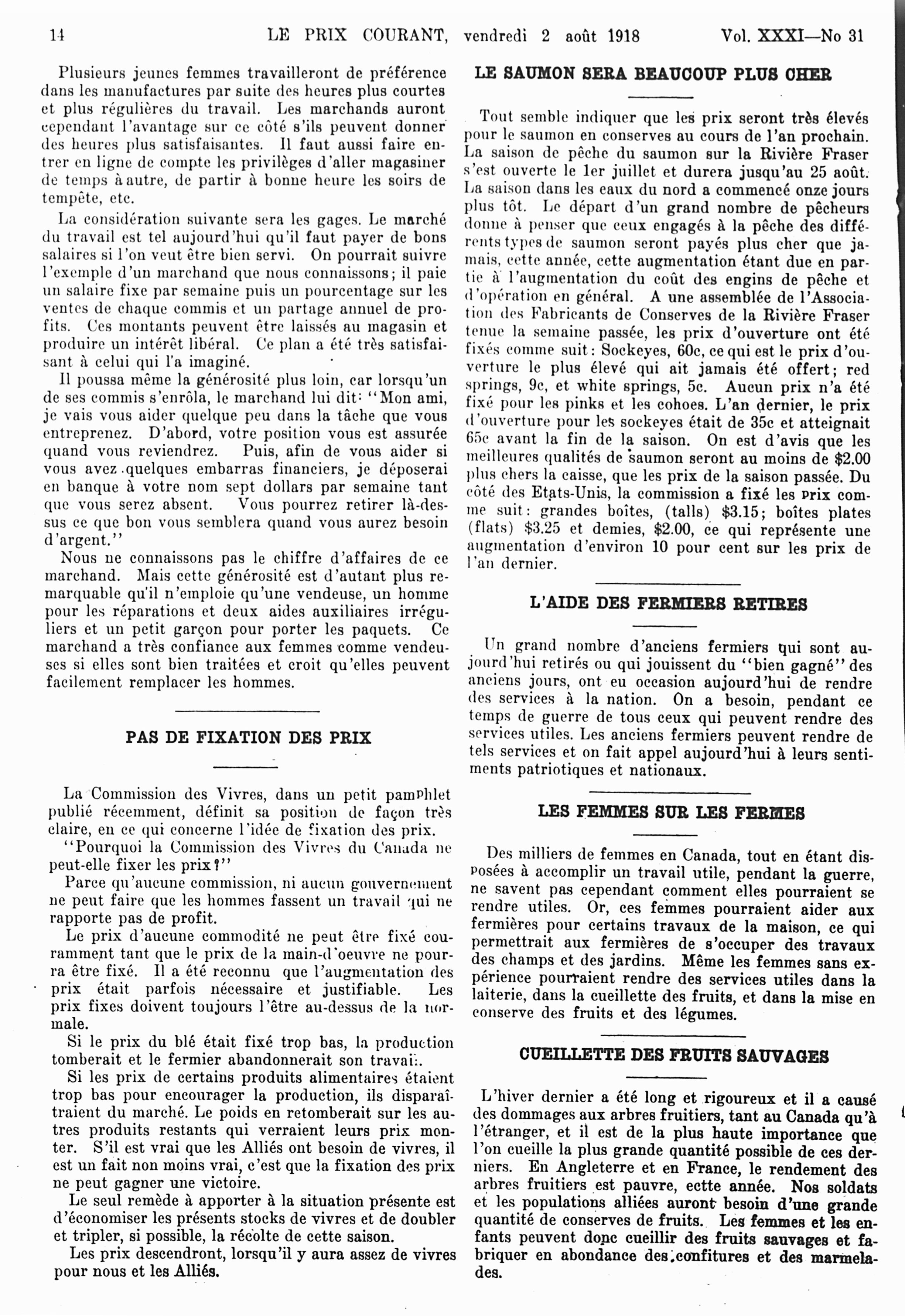 Le prix courant : Vol. 31, no 31 (2 août 1918)