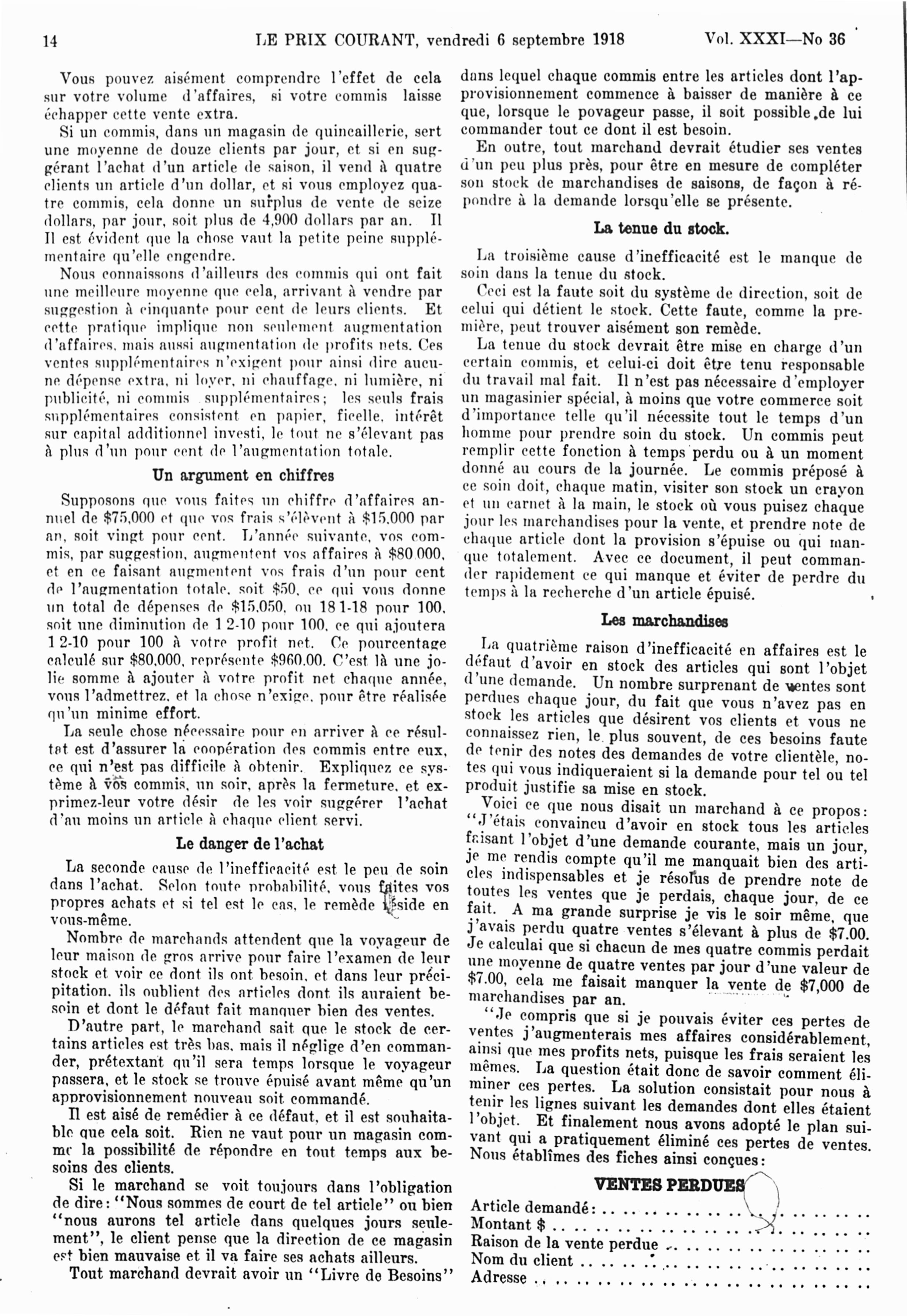 Le prix courant : Vol. 31, no 36 (6 sept. 1918)