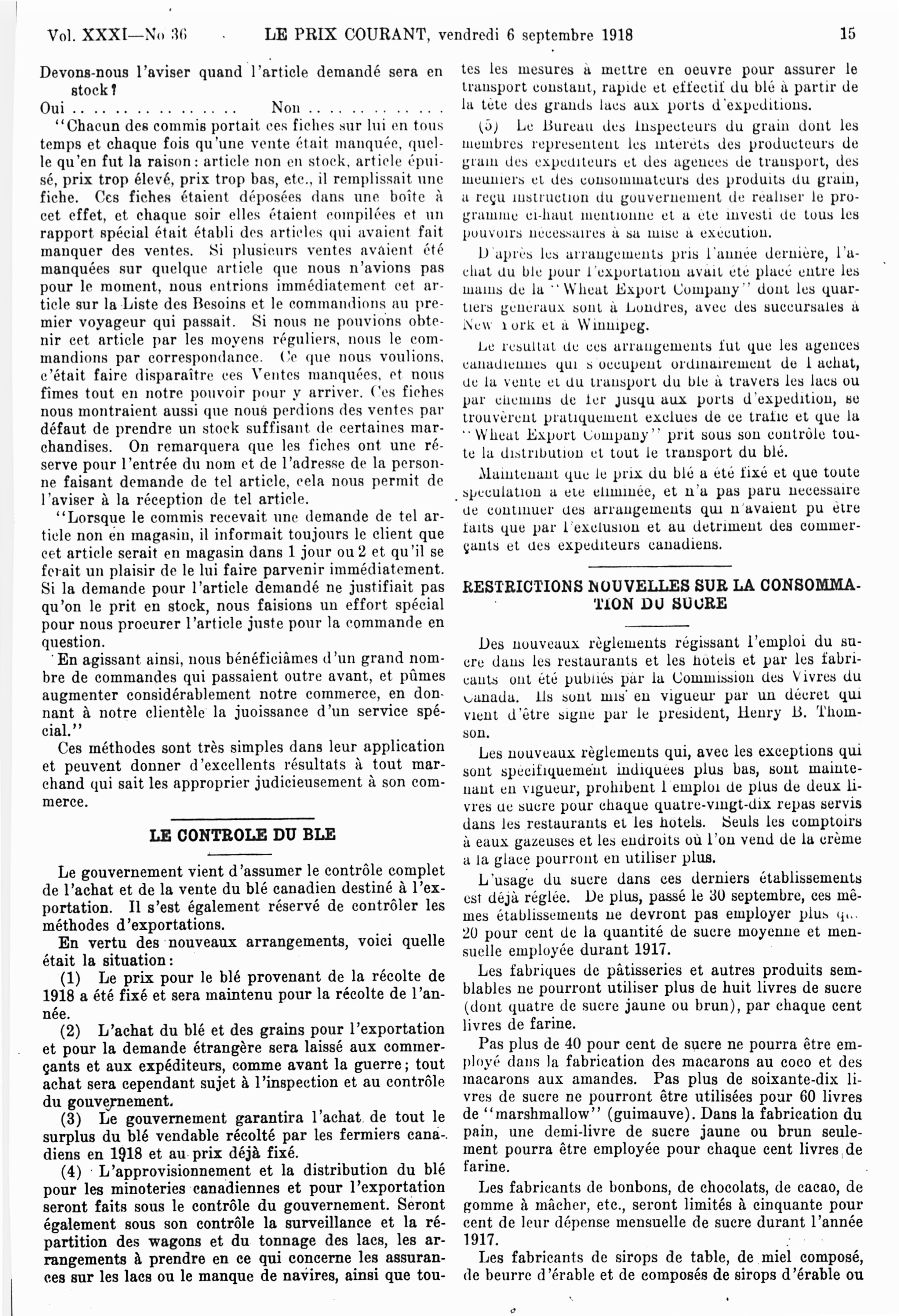 Le prix courant : Vol. 31, no 36 (6 sept. 1918)