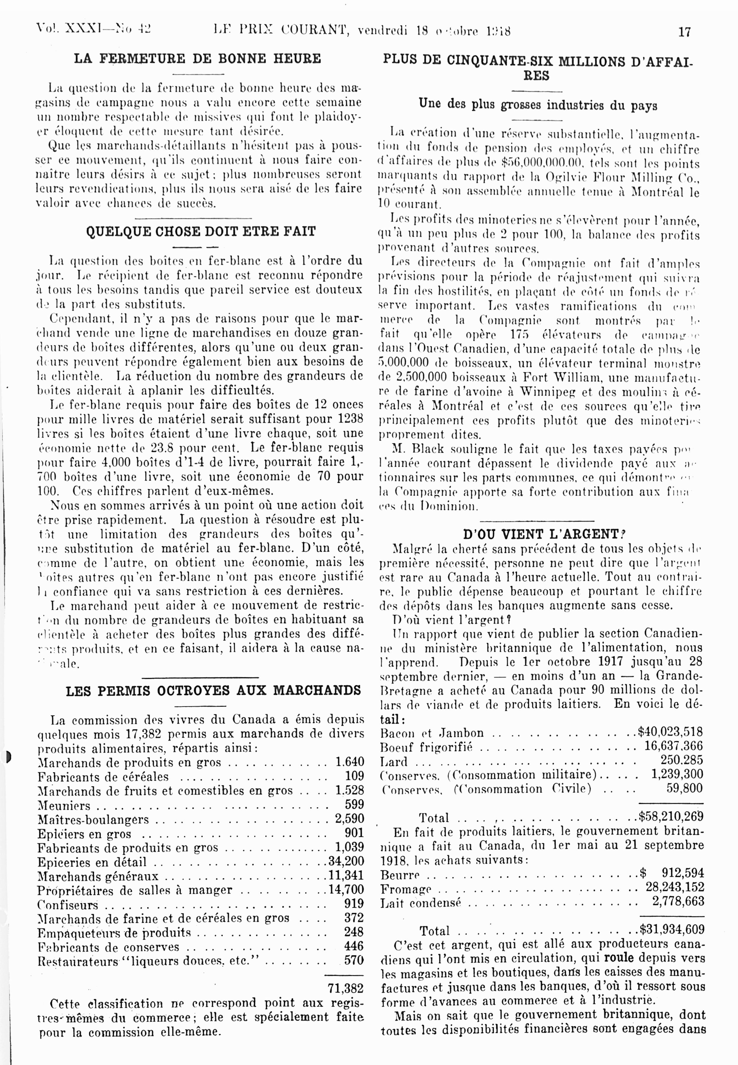 Le prix courant : Vol. 31, no 42 (18 oct. 1918)