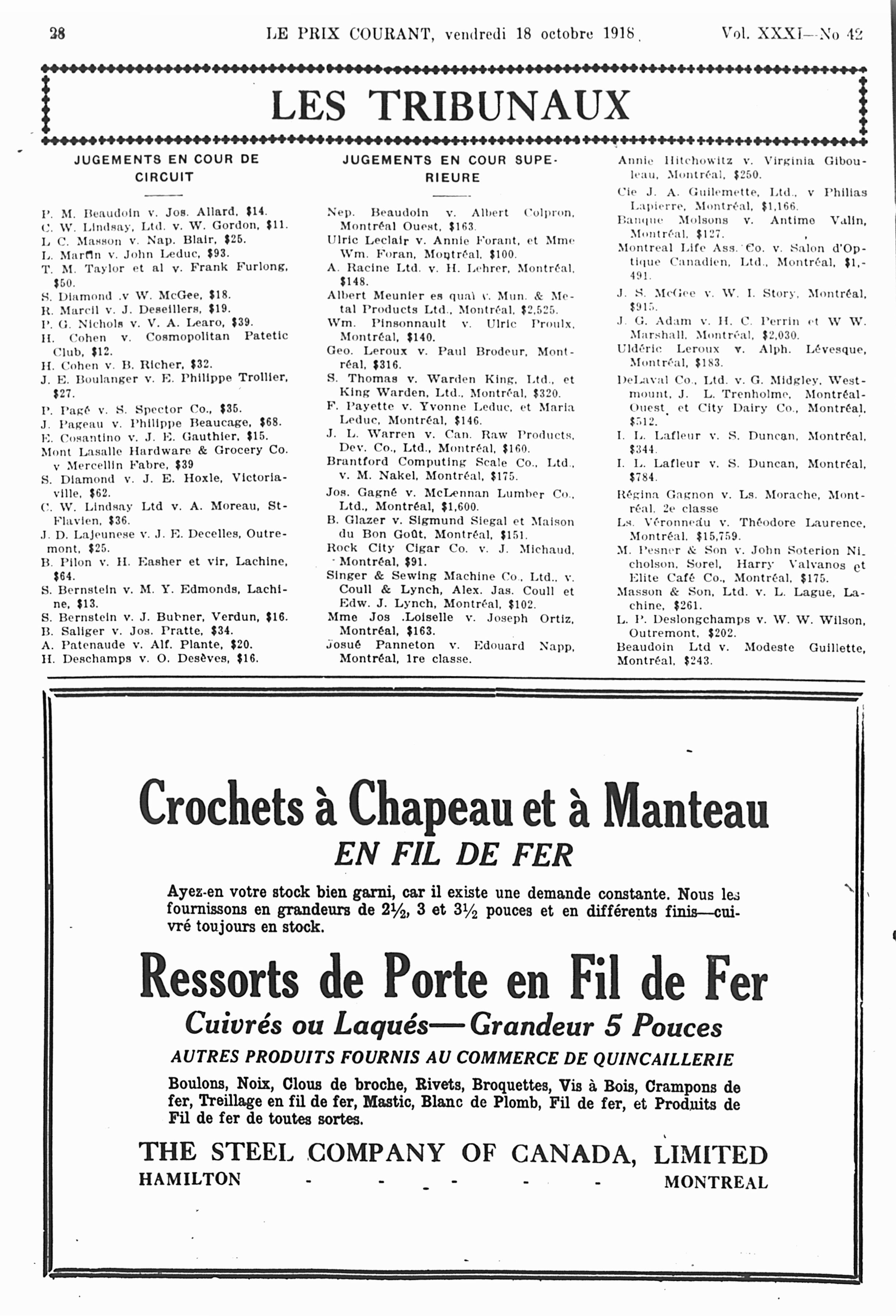 Le prix courant : Vol. 31, no 42 (18 oct. 1918)