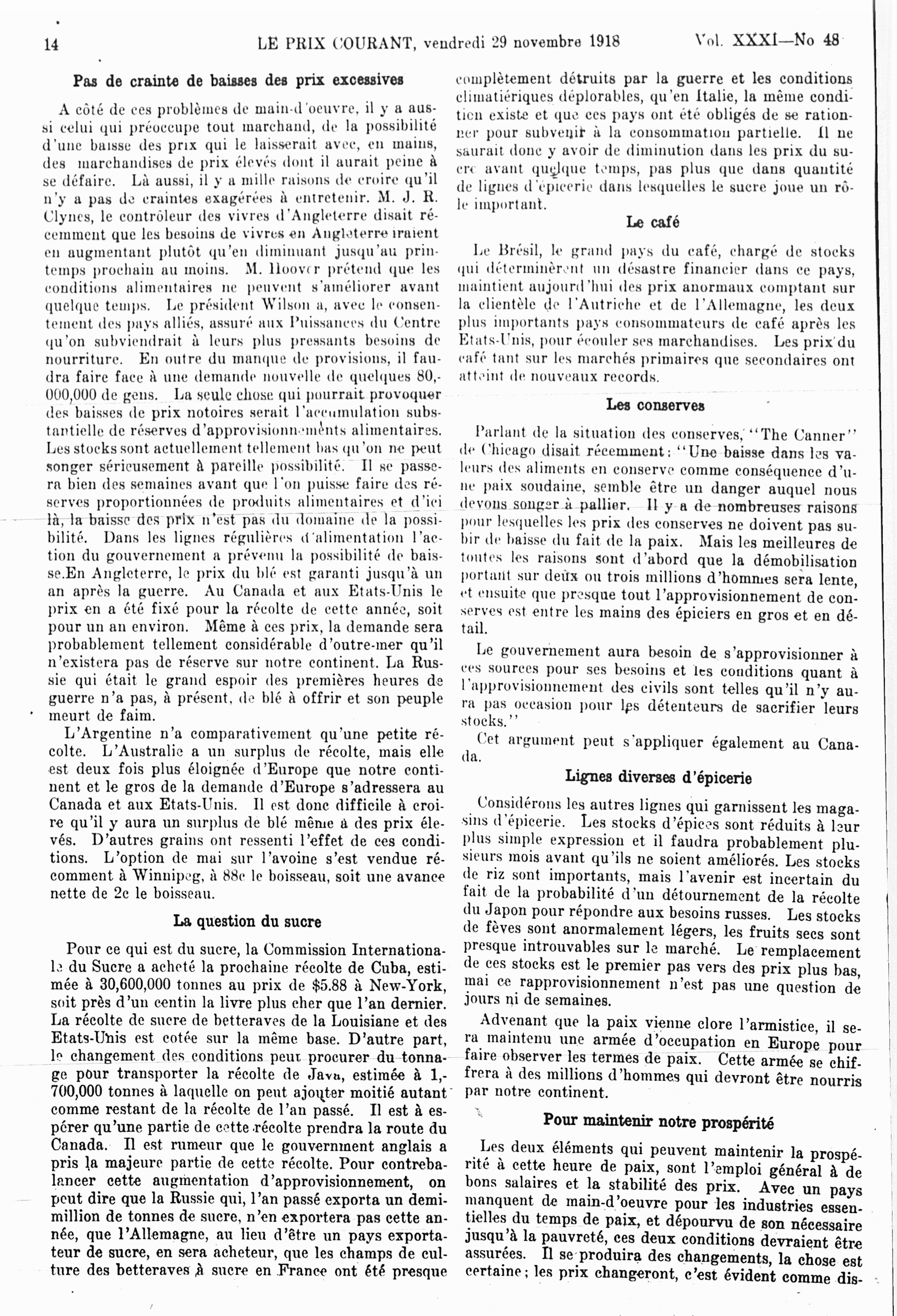 Le prix courant : Vol. 31, no 48 (29 nov. 1918)