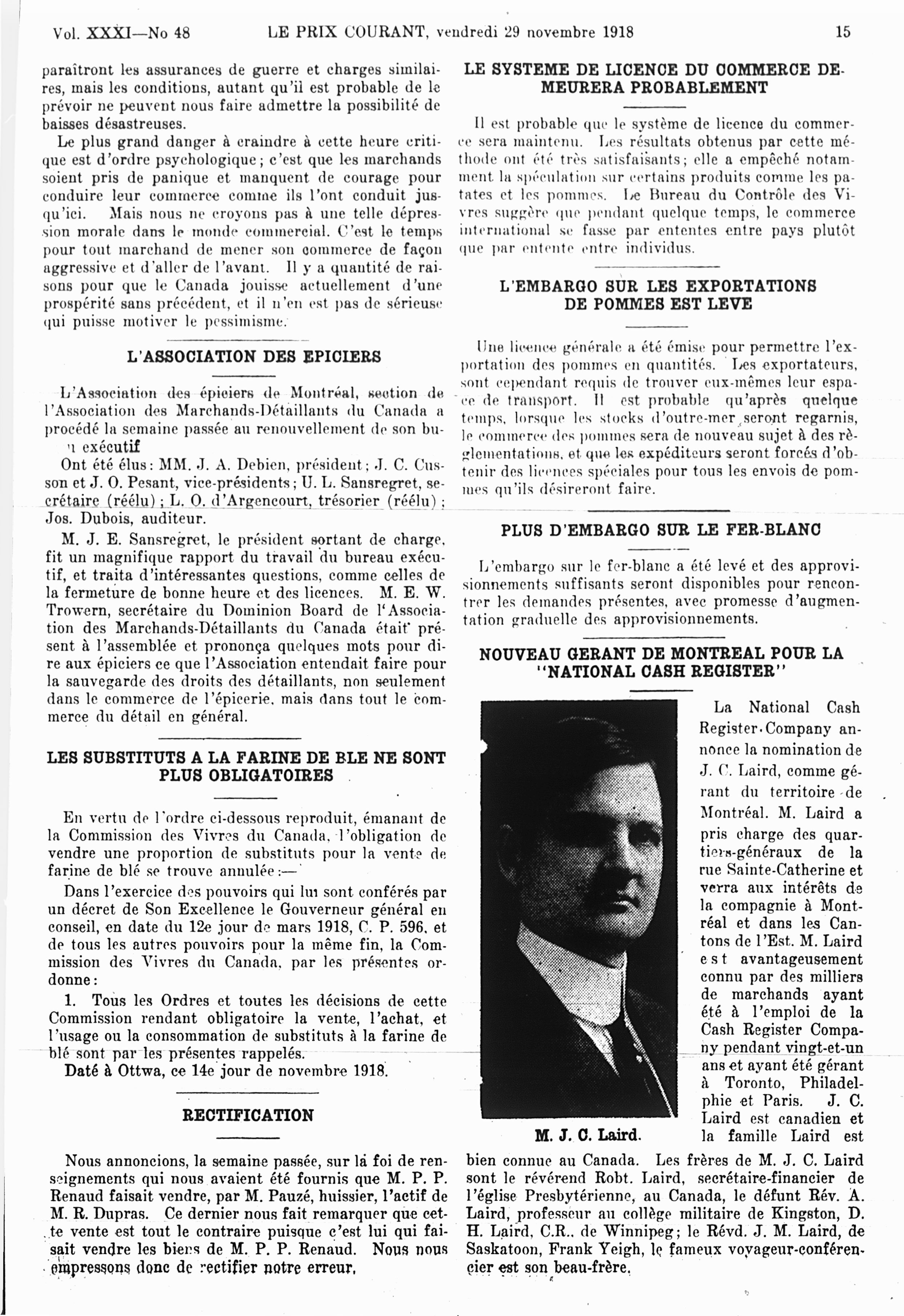 Le prix courant : Vol. 31, no 48 (29 nov. 1918)