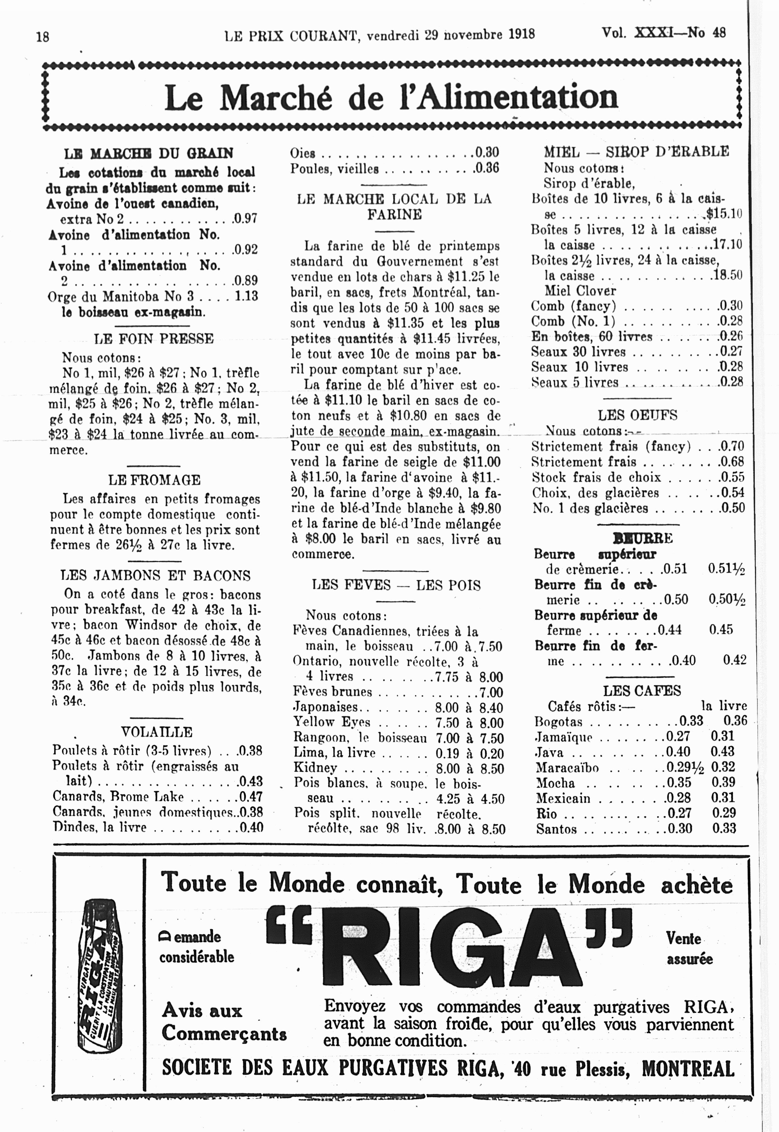 Le prix courant : Vol. 31, no 48 (29 nov. 1918)