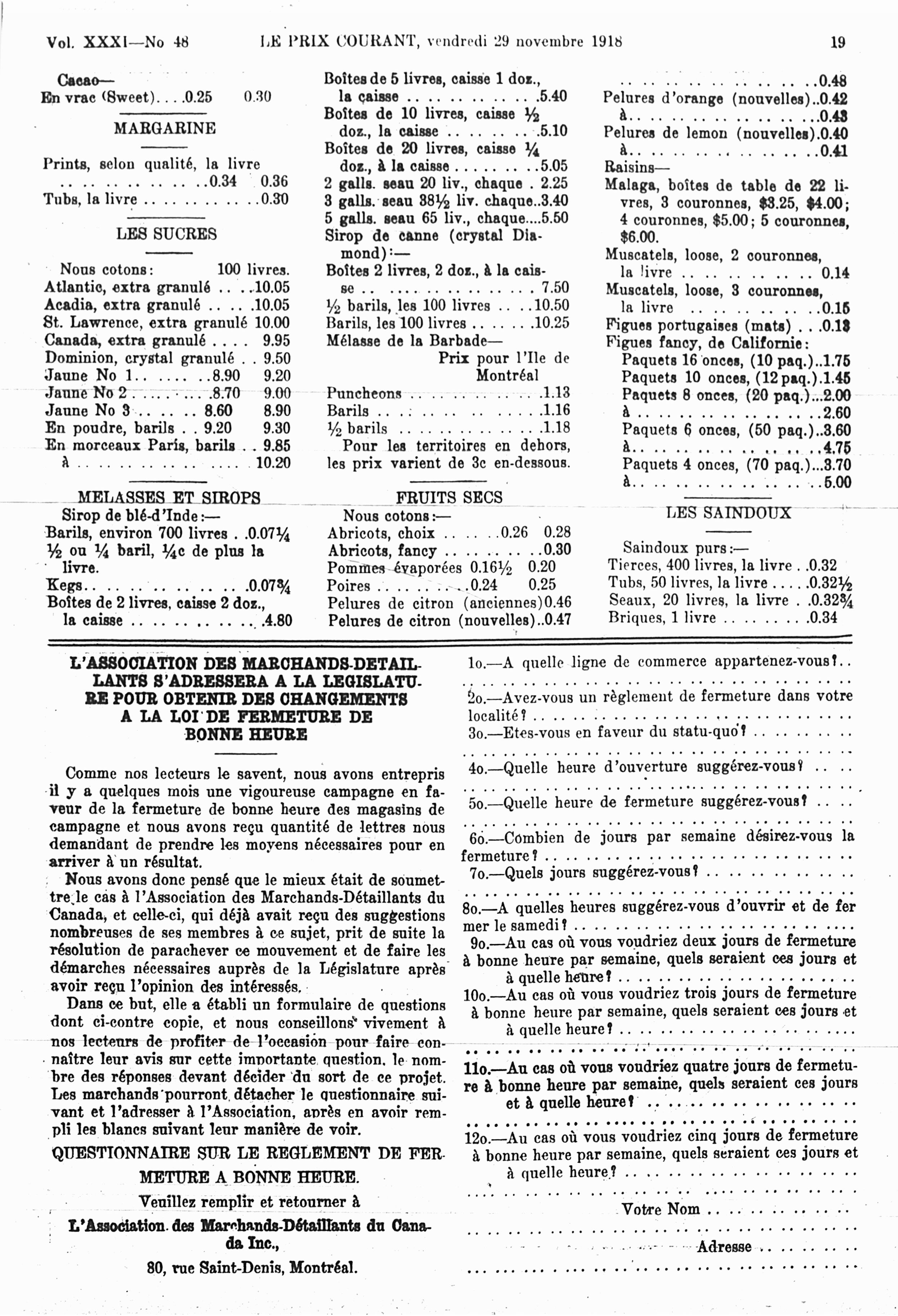 Le prix courant : Vol. 31, no 48 (29 nov. 1918)