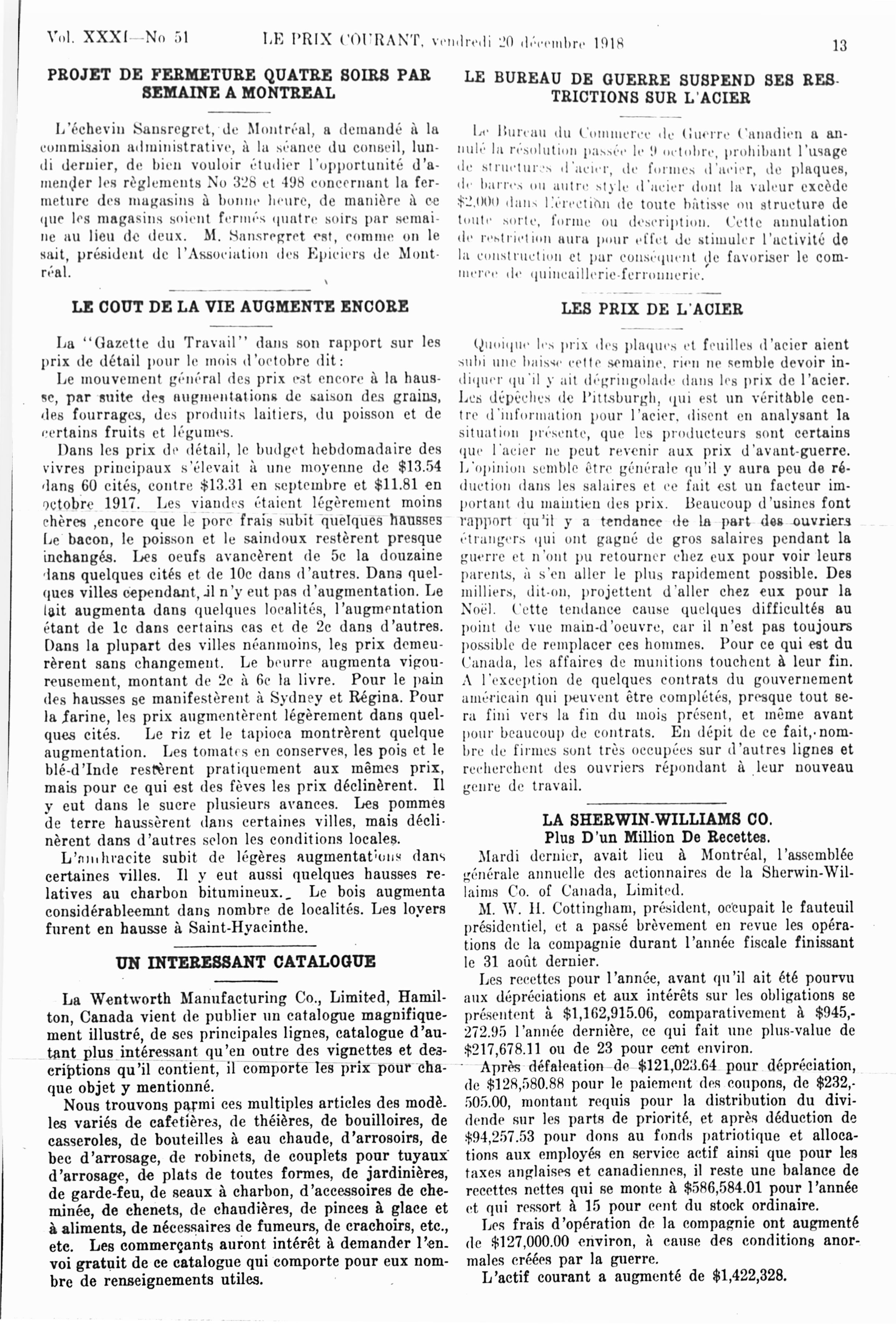 Le prix courant : Vol. 31, no 51 (20 déc. 1918)