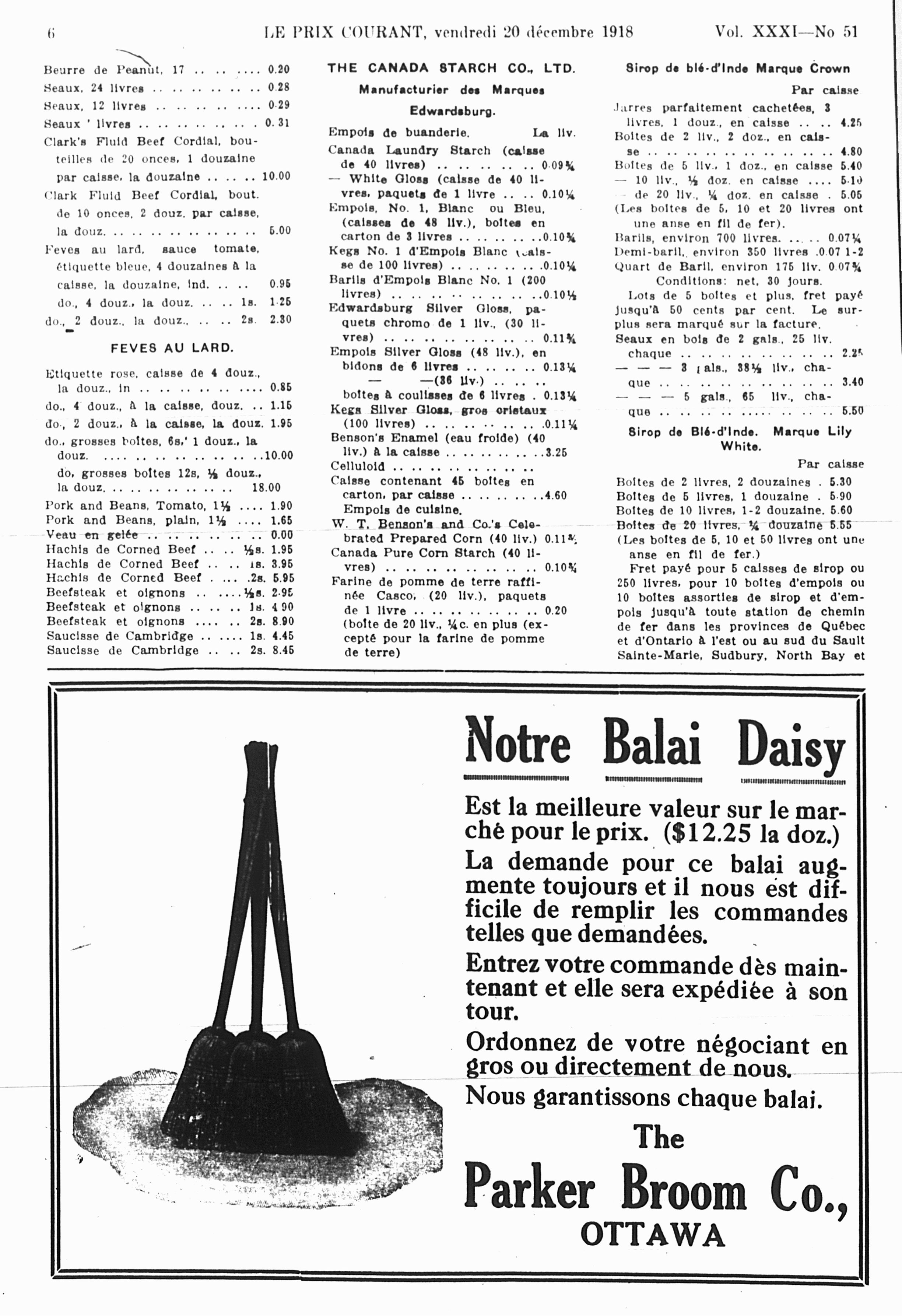 Le prix courant : Vol. 31, no 51 (20 déc. 1918)