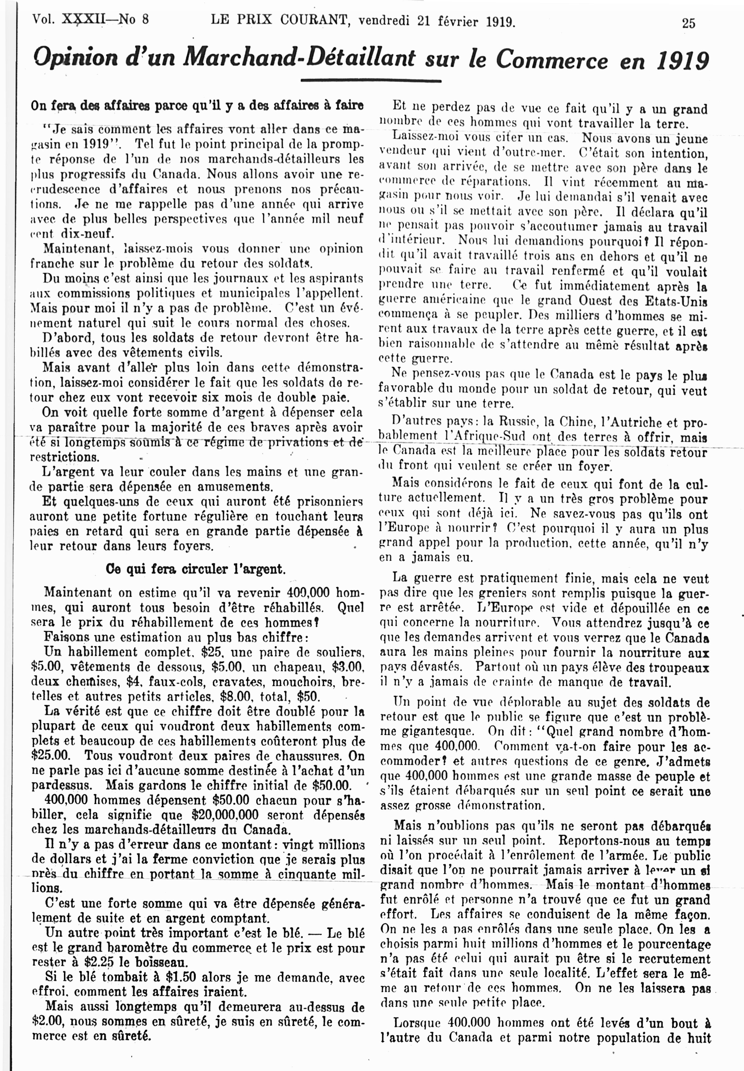 Le prix courant : Vol. 32, no 8 (21 févr. 1919)