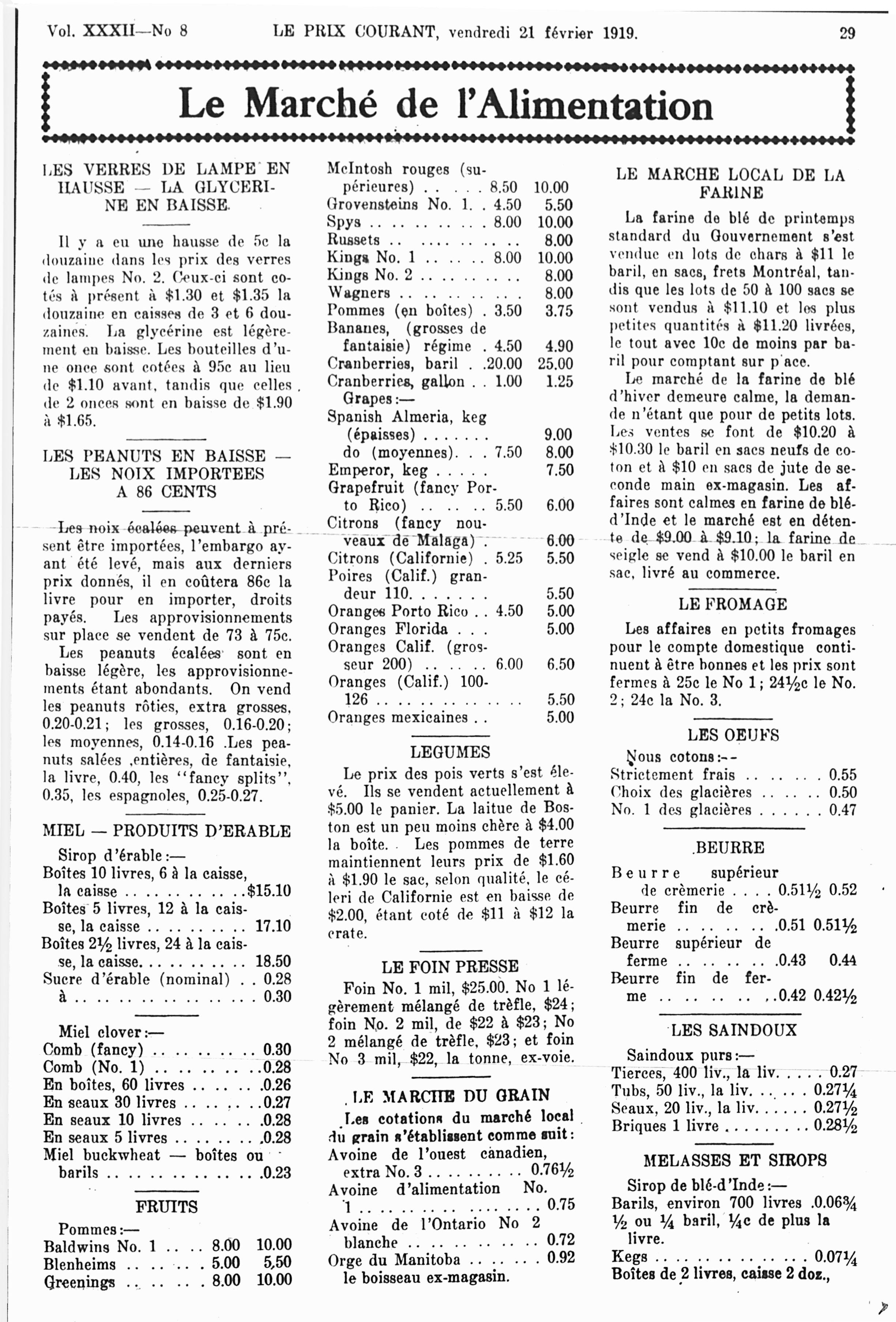 Le prix courant : Vol. 32, no 8 (21 févr. 1919)
