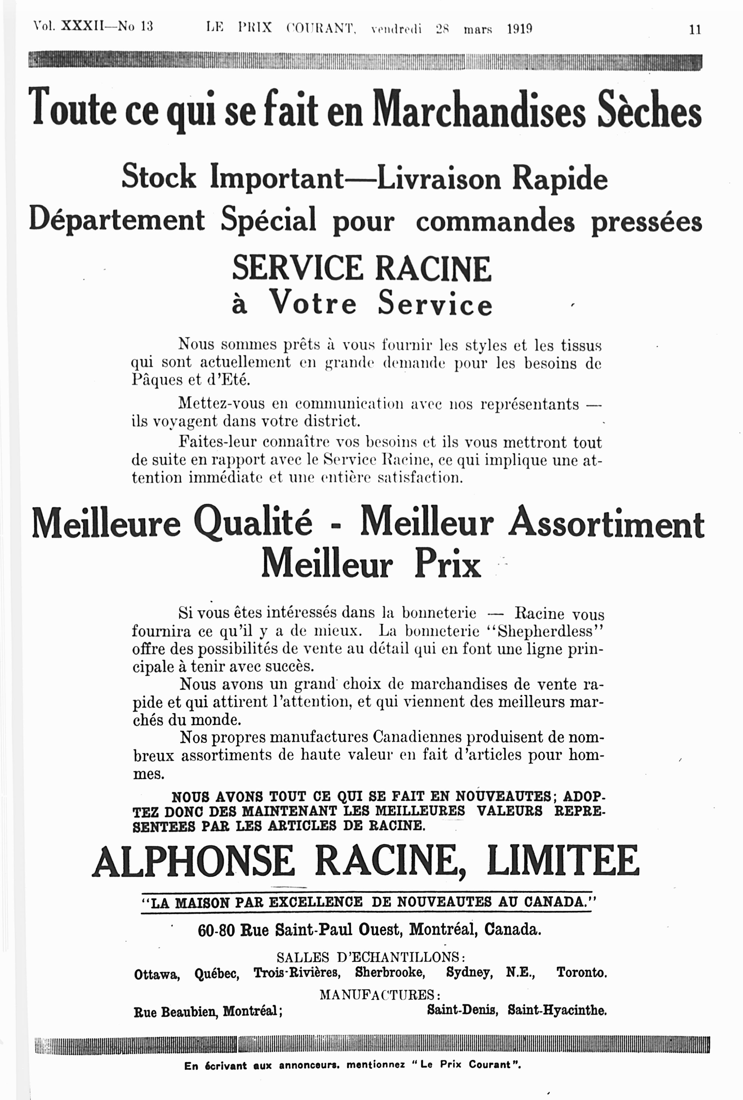 Le prix courant : Vol. 32, no 13 (28 mars 1919)