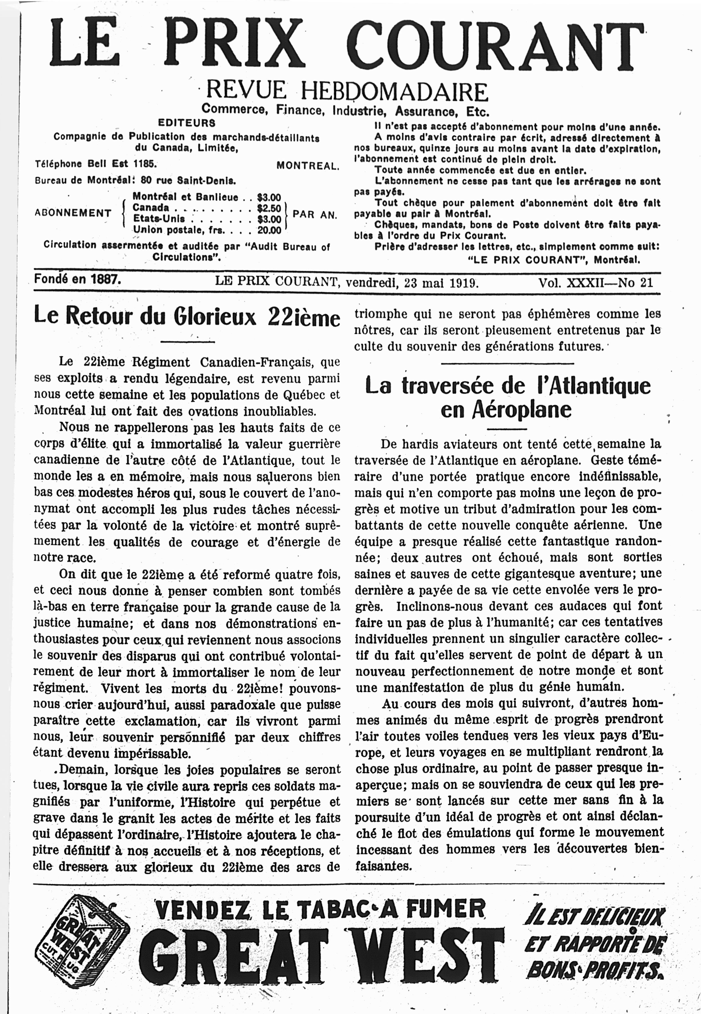 Le prix courant : Vol. 32, no 21 (23 mai 1919)