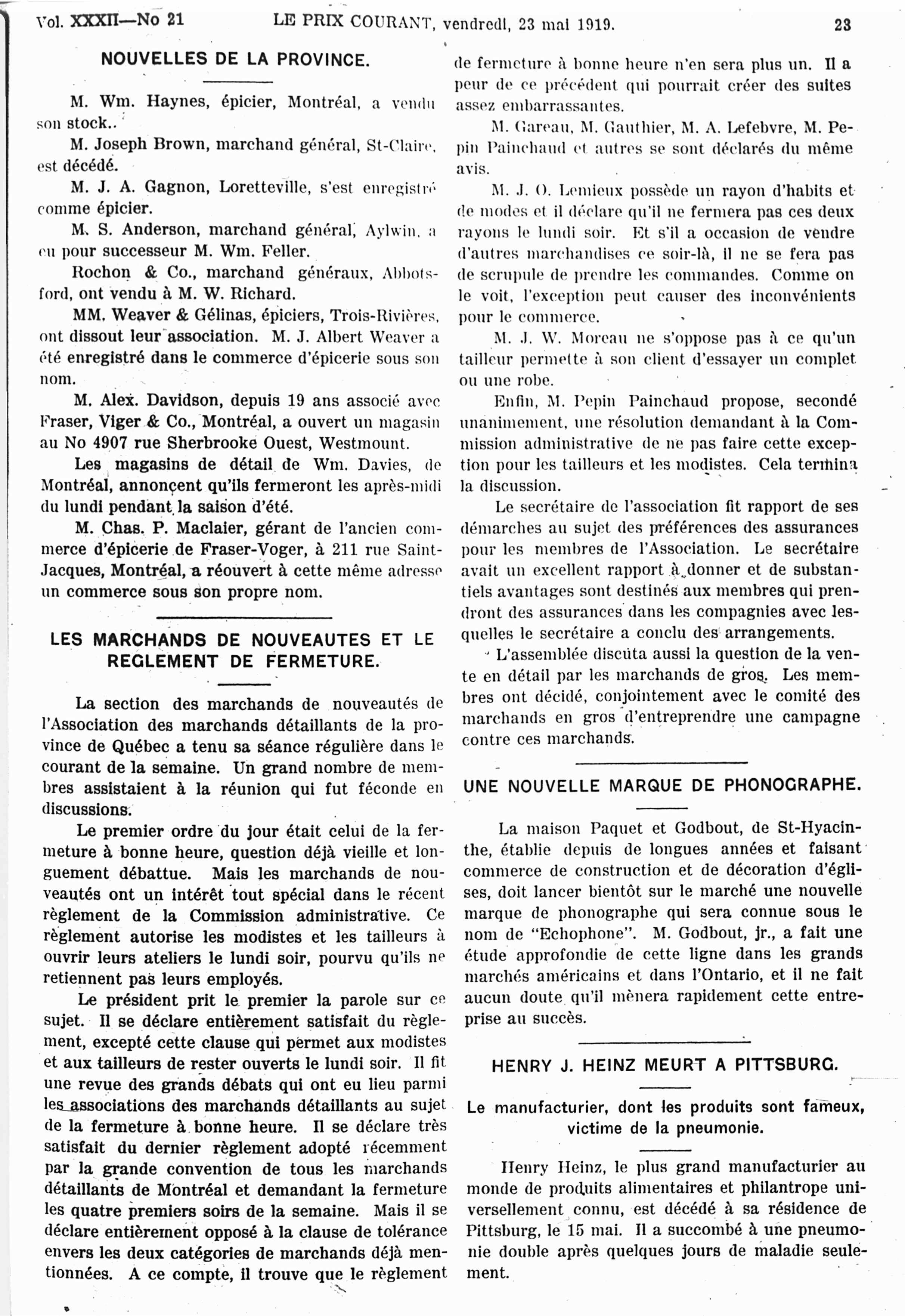 Le prix courant : Vol. 32, no 21 (23 mai 1919)