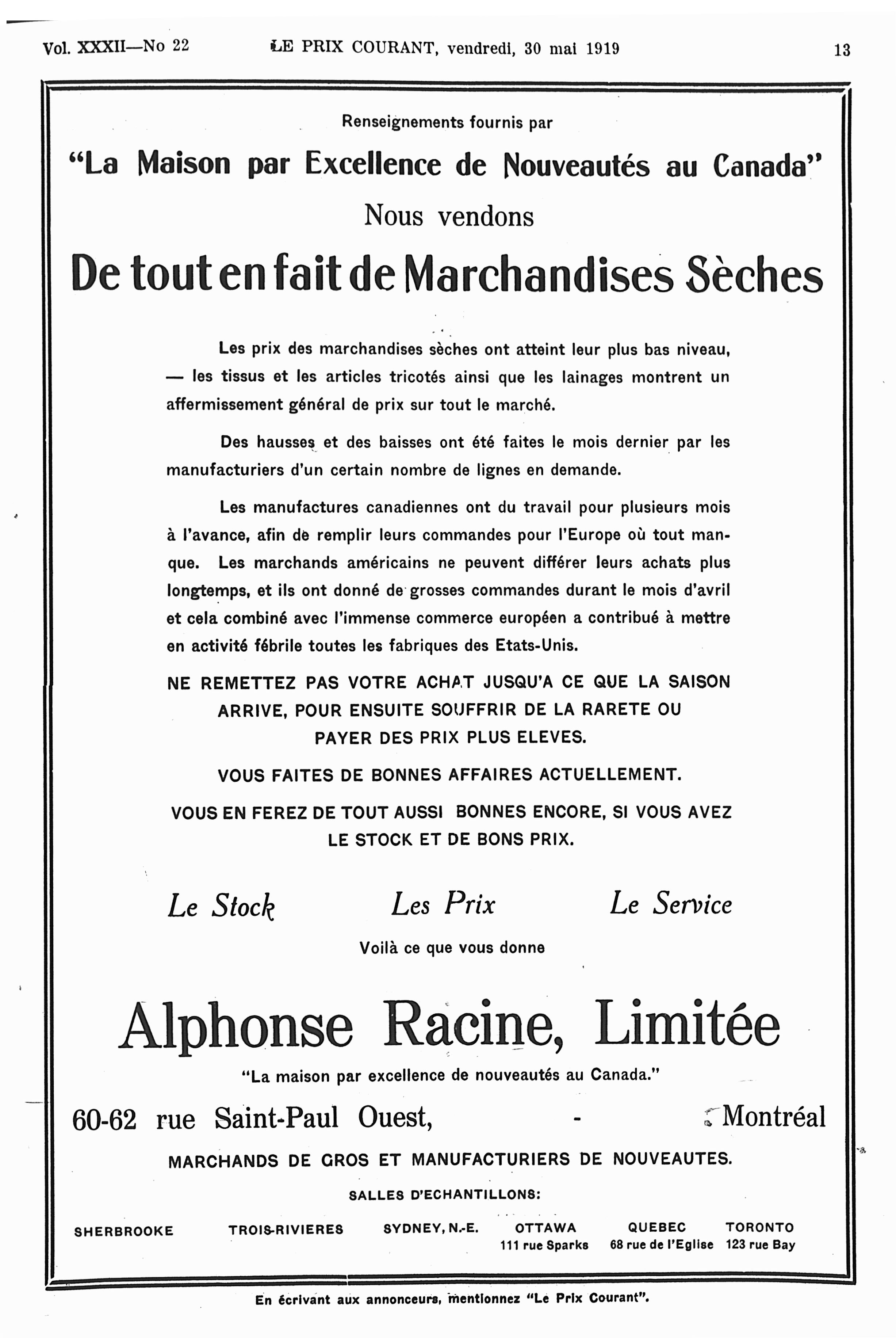 Le prix courant : Vol. 32, no 22 (30 mai 1919)