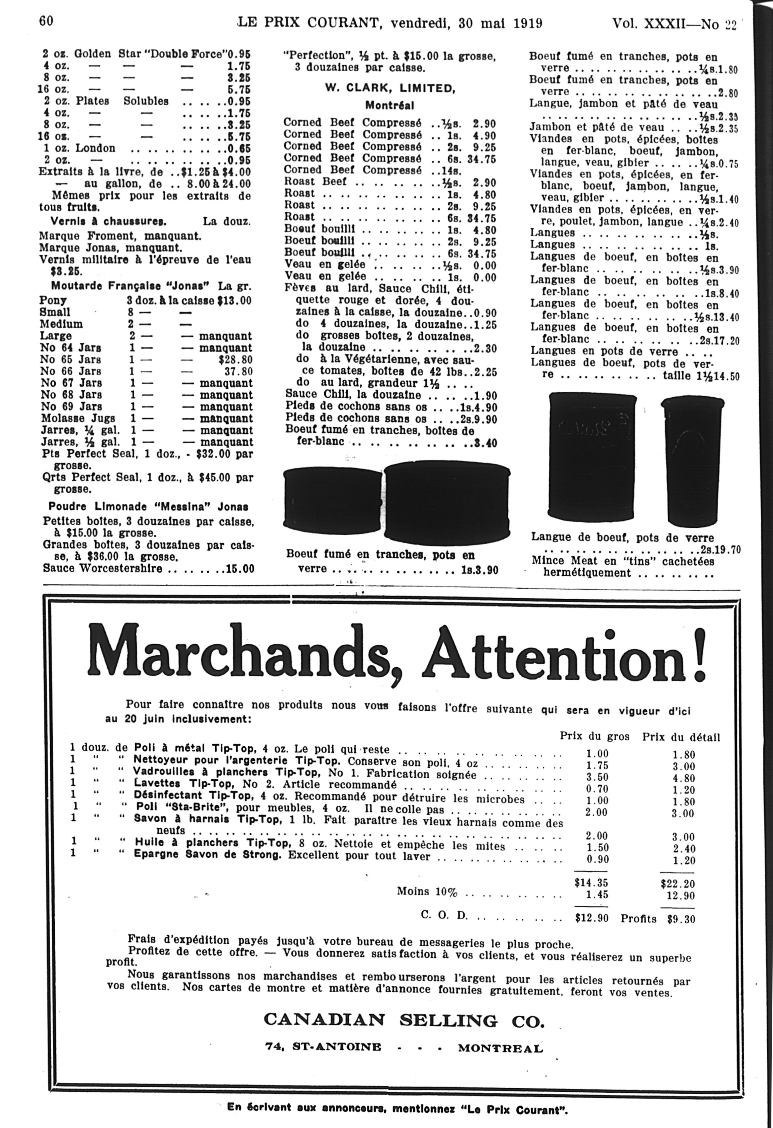 Le prix courant : Vol. 32, no 22 (30 mai 1919)