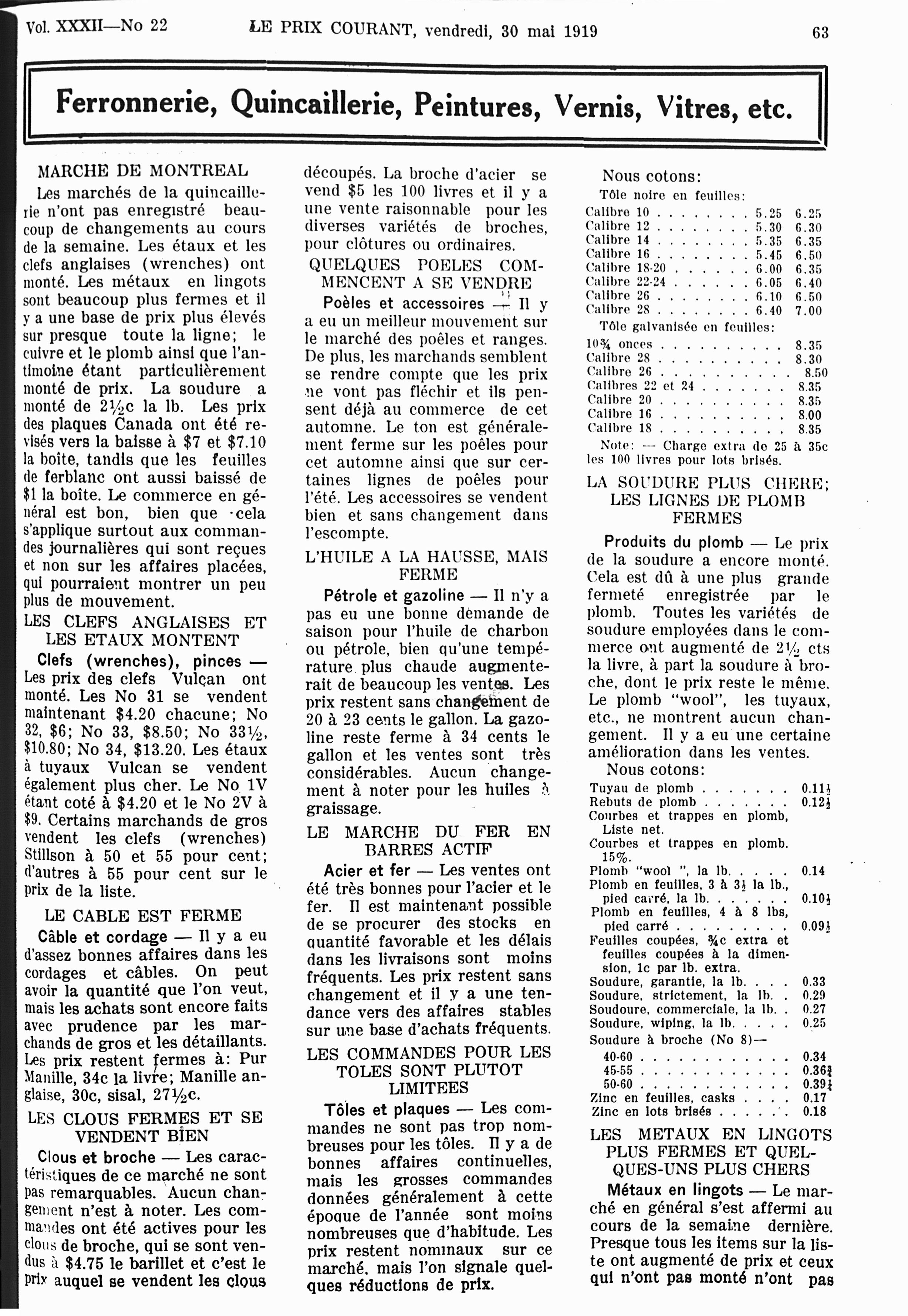 Le prix courant : Vol. 32, no 22 (30 mai 1919)