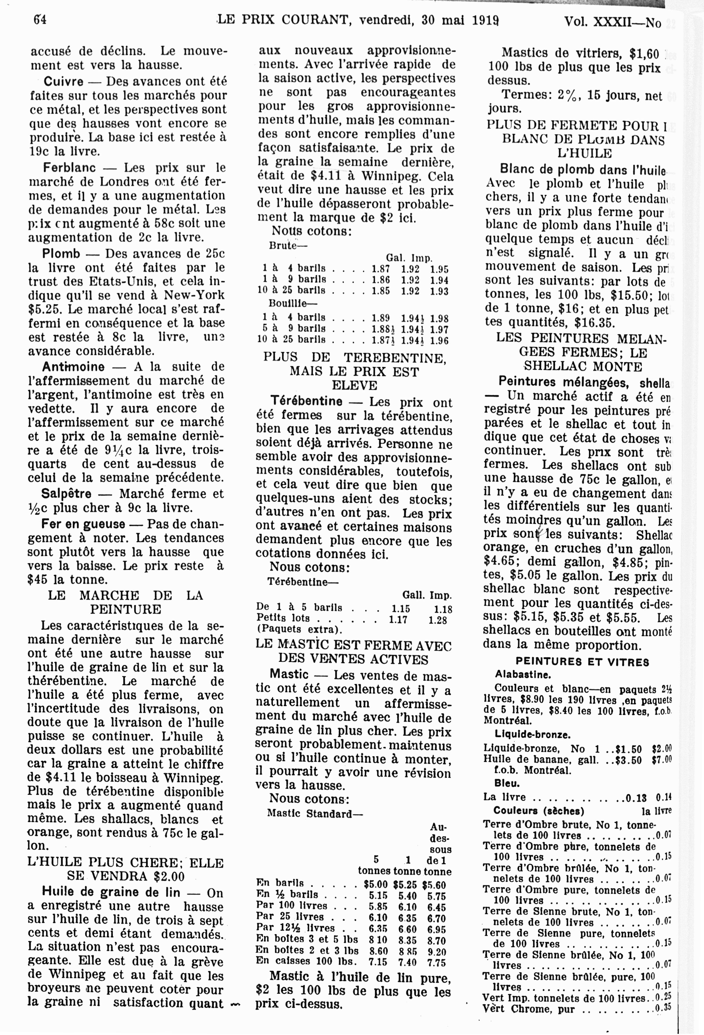 Le prix courant : Vol. 32, no 22 (30 mai 1919)
