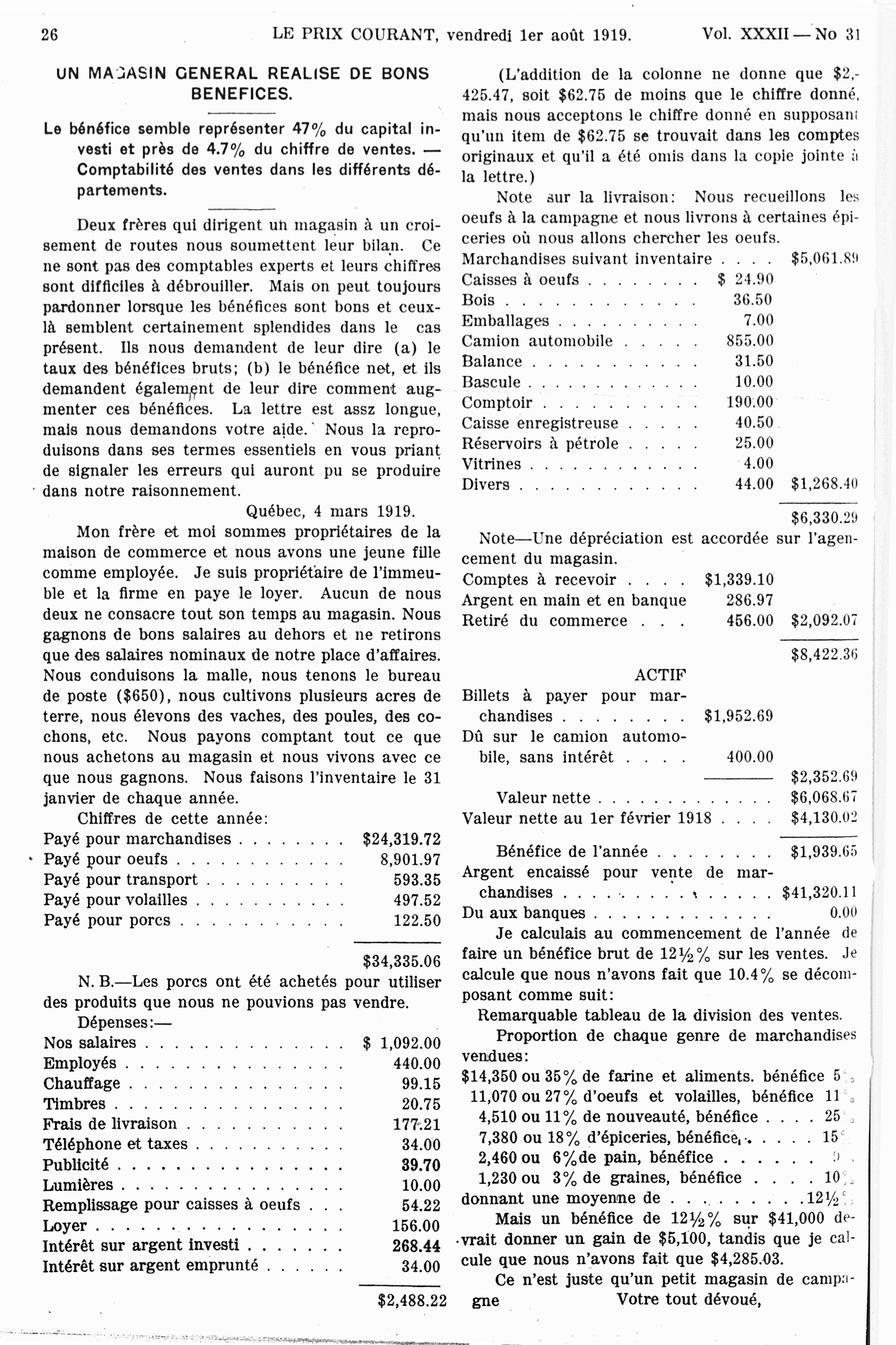Le prix courant : Vol. 32, no 31 (1 août 1919)