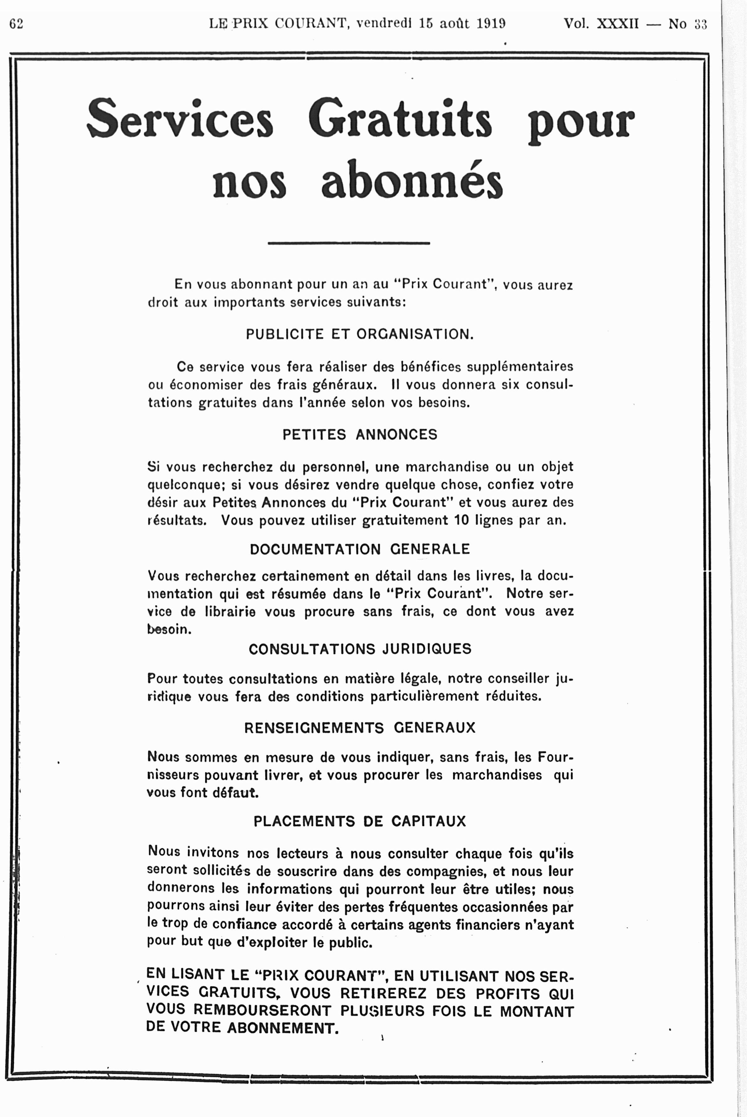 Le prix courant : Vol. 32, no 33 (15 août 1919)