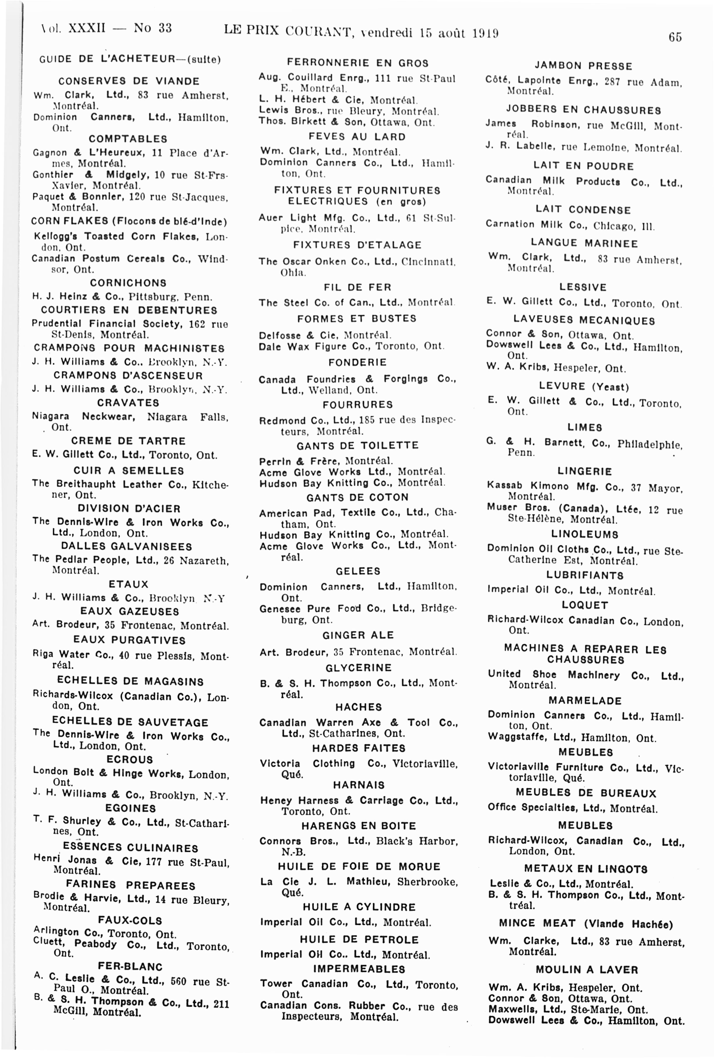 Le prix courant : Vol. 32, no 33 (15 août 1919)