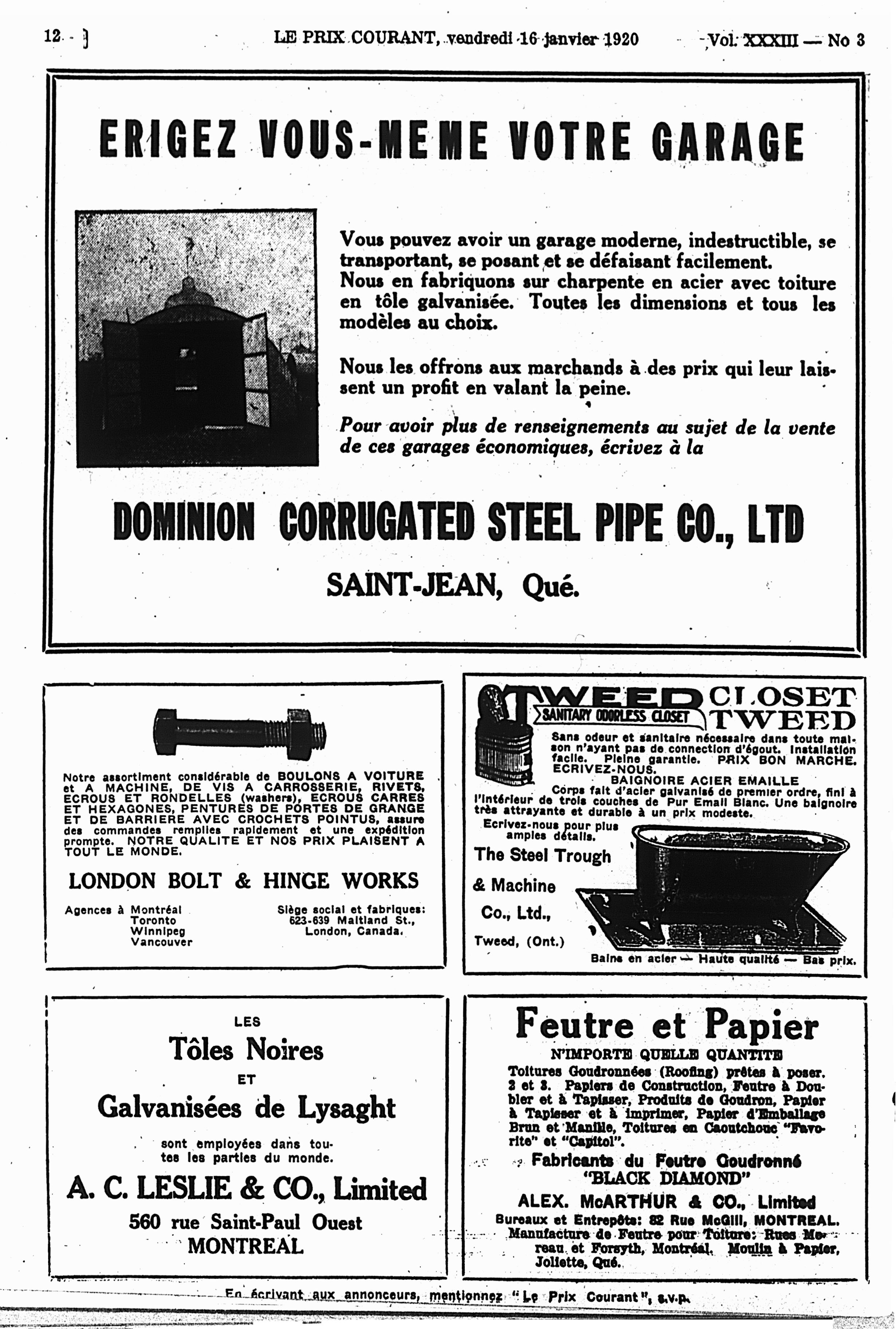 Le prix courant : Vol. 33, no 3 (16 janv. 1920)