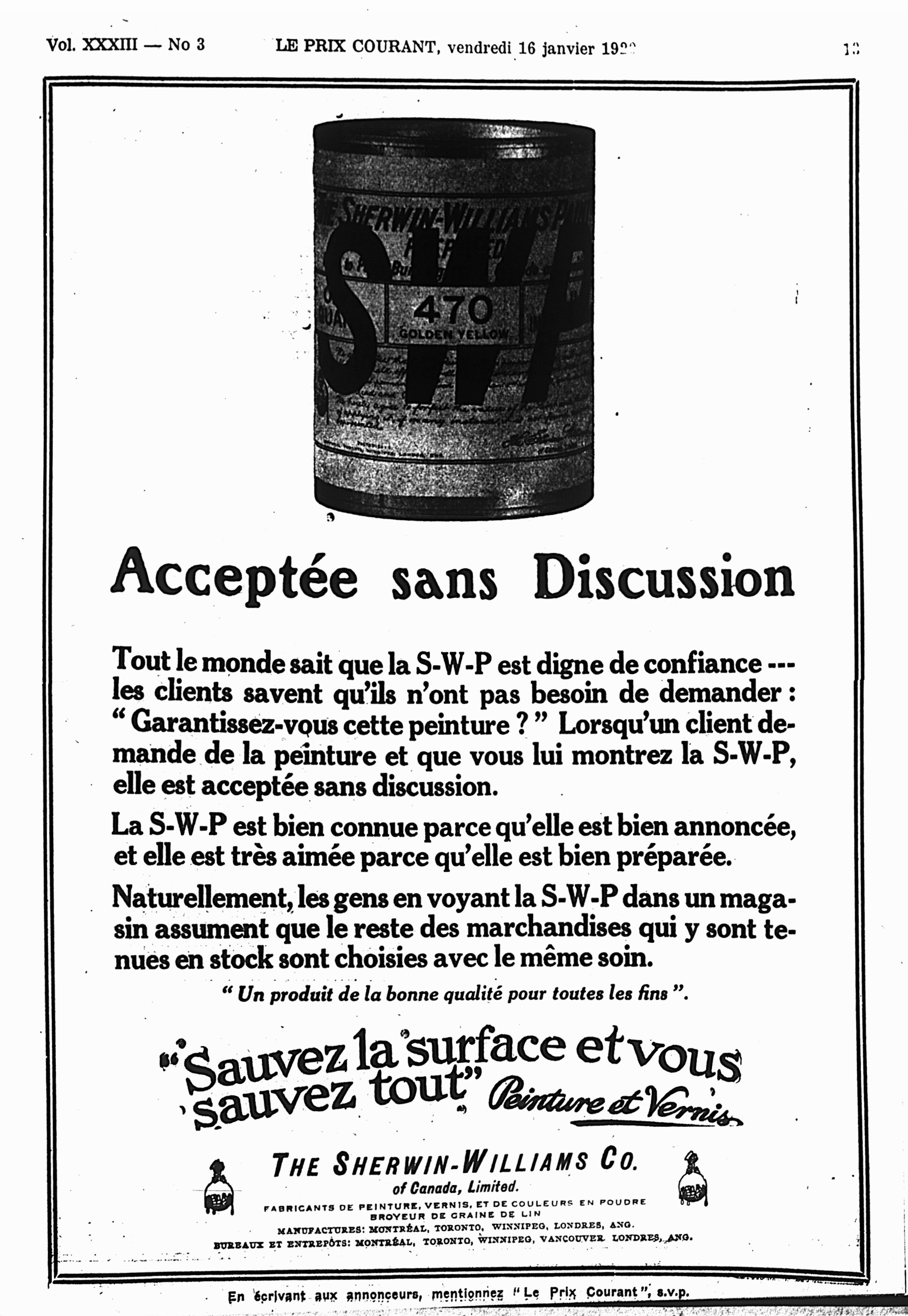 Le prix courant : Vol. 33, no 3 (16 janv. 1920)