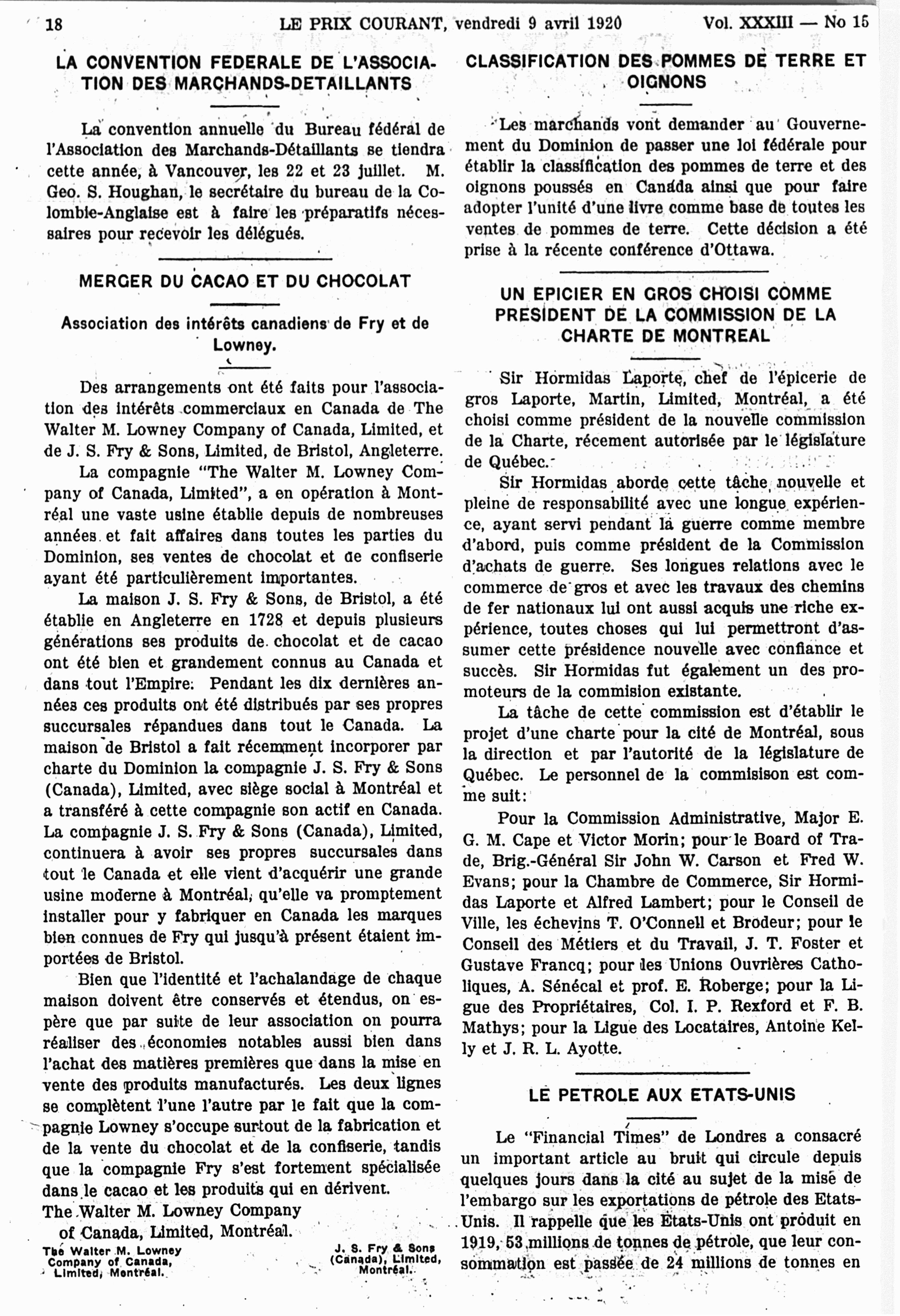 Le prix courant : Vol. 33, no 15 (9 avril 1920)
