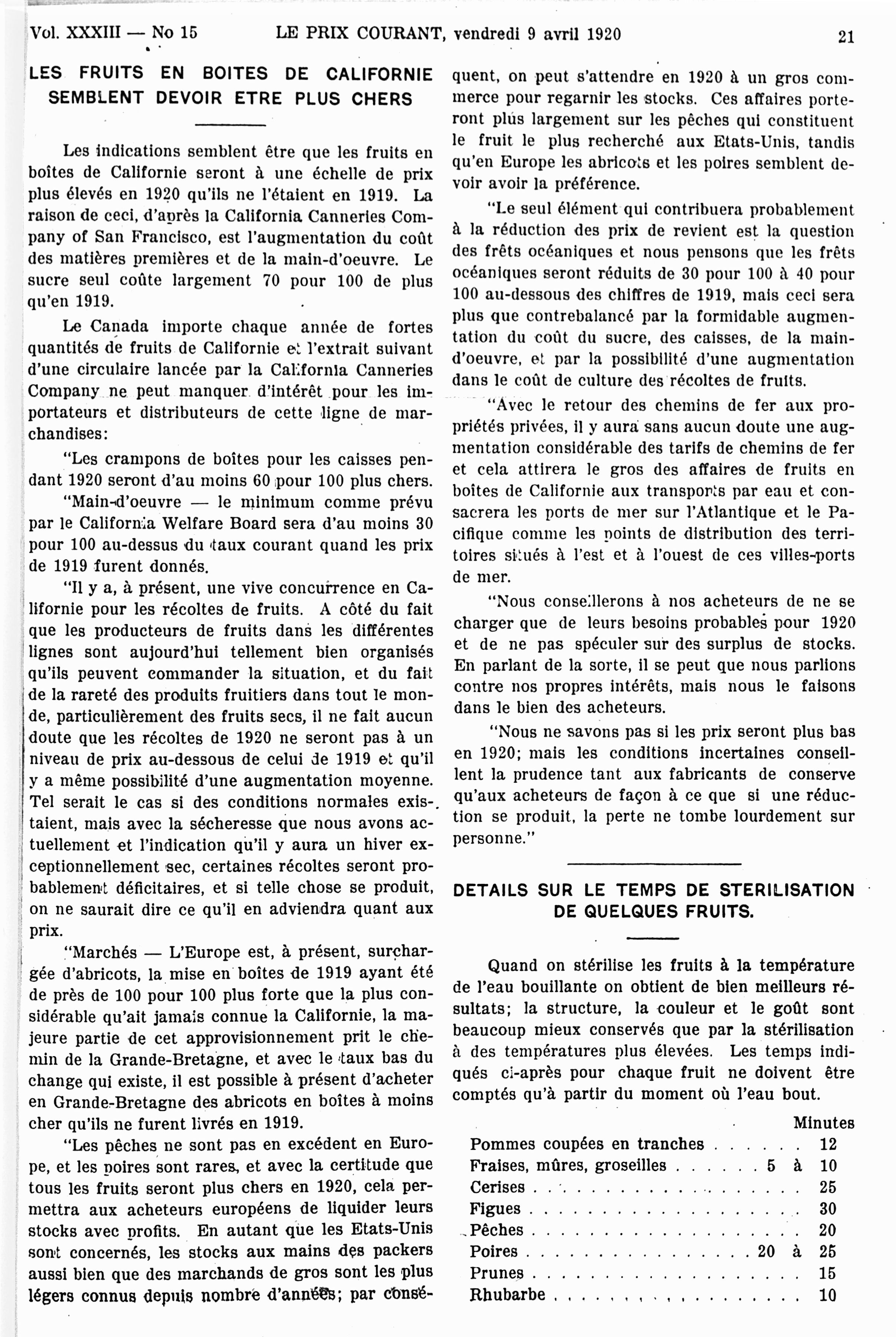 Le prix courant : Vol. 33, no 15 (9 avril 1920)