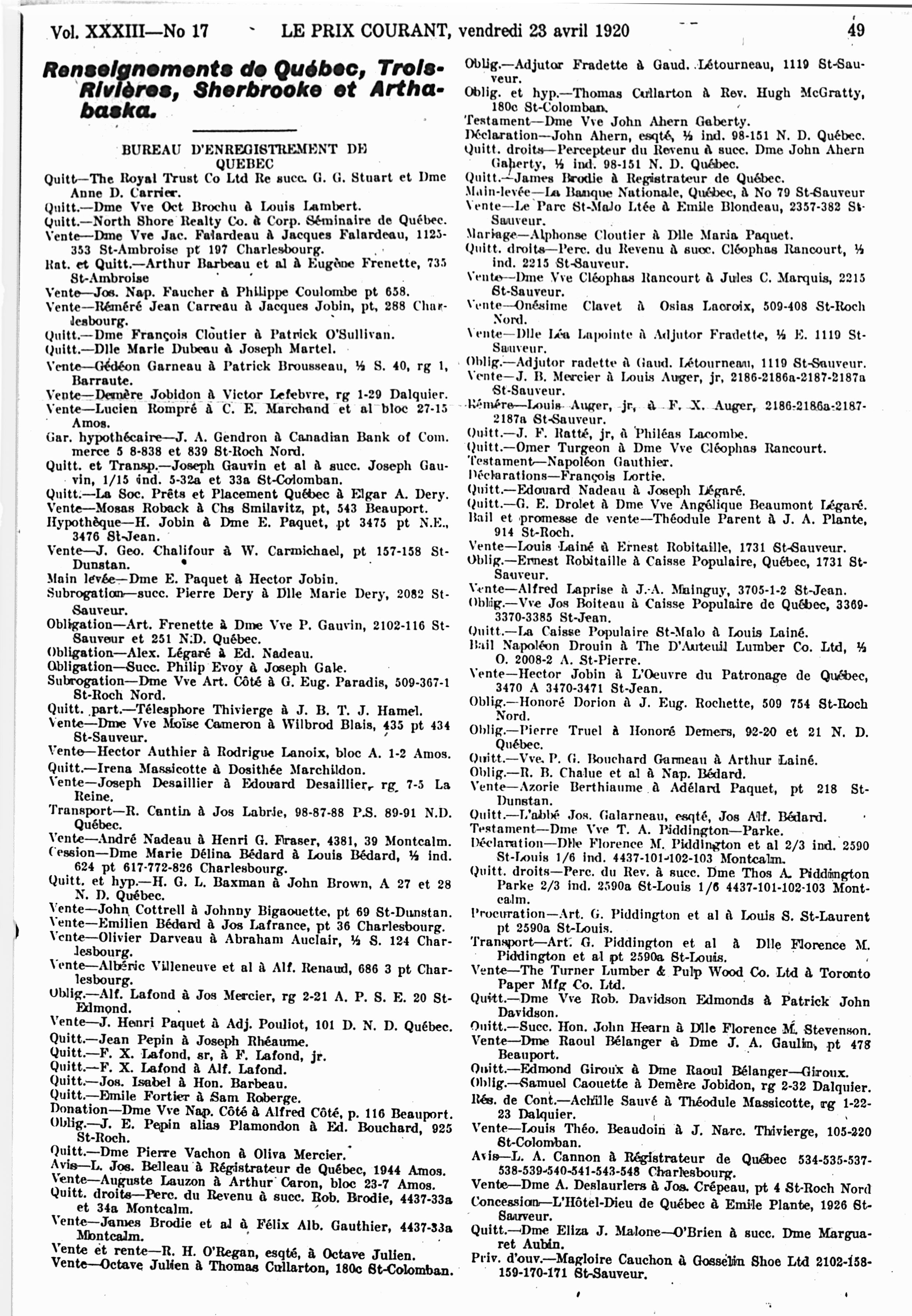 Le prix courant : Vol. 33, no 17 (23 avril 1920)