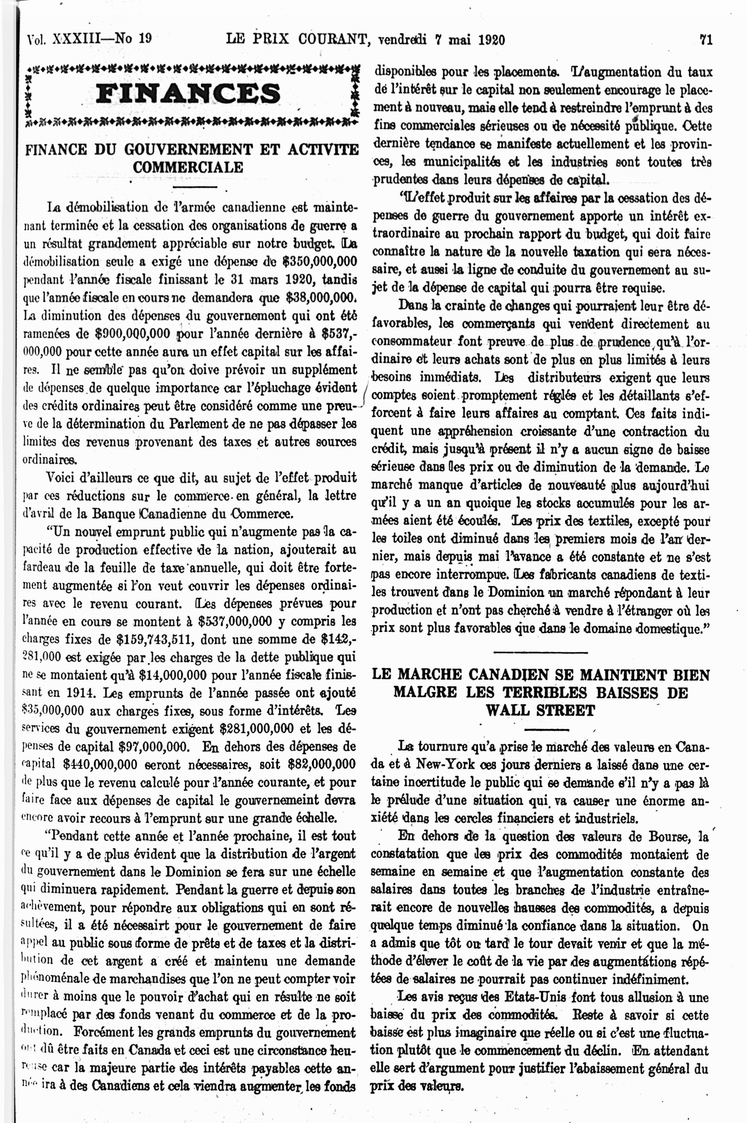 Le prix courant : Vol. 33, no 19 (7 mai 1920)