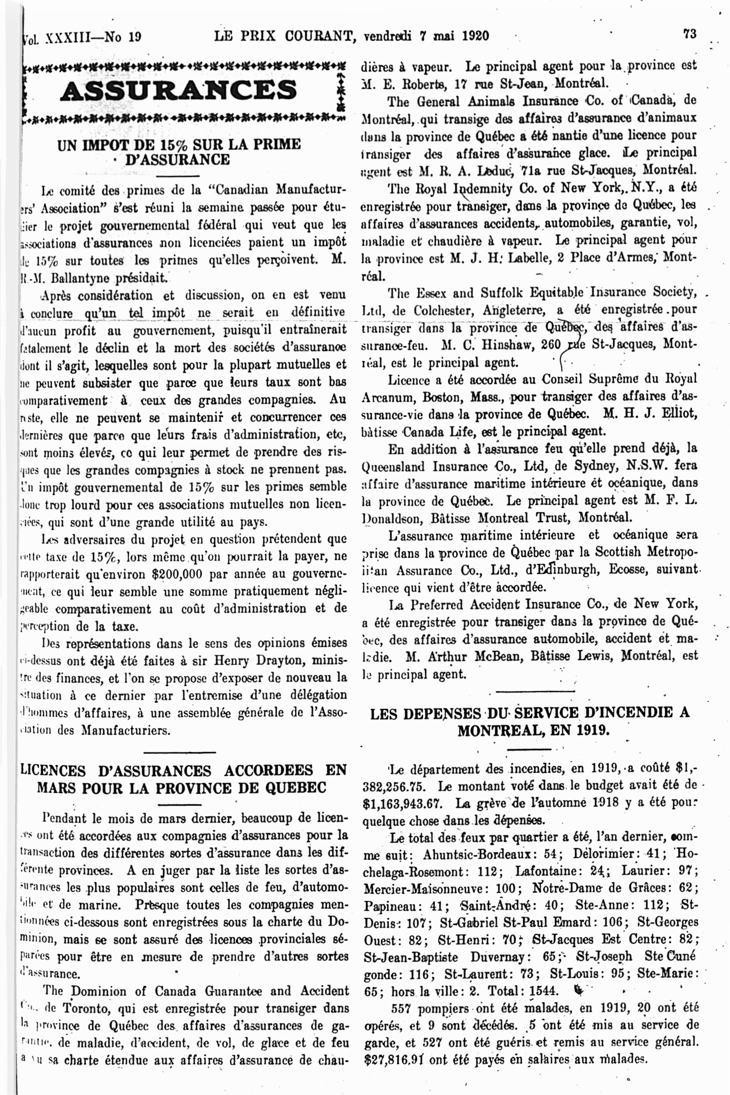 Le prix courant : Vol. 33, no 19 (7 mai 1920)