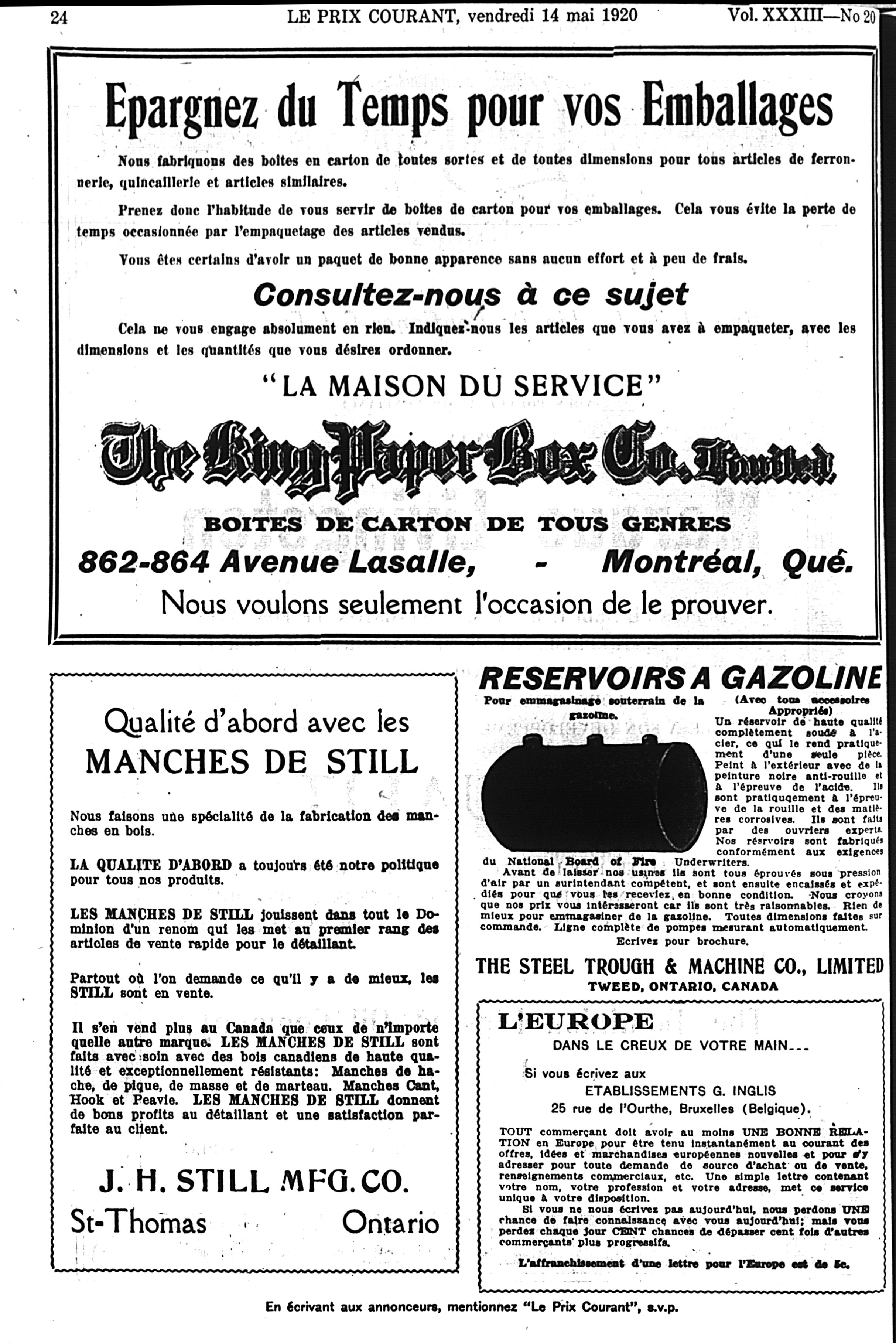 Le prix courant : Vol. 33, no 20 (14 mai 1920)