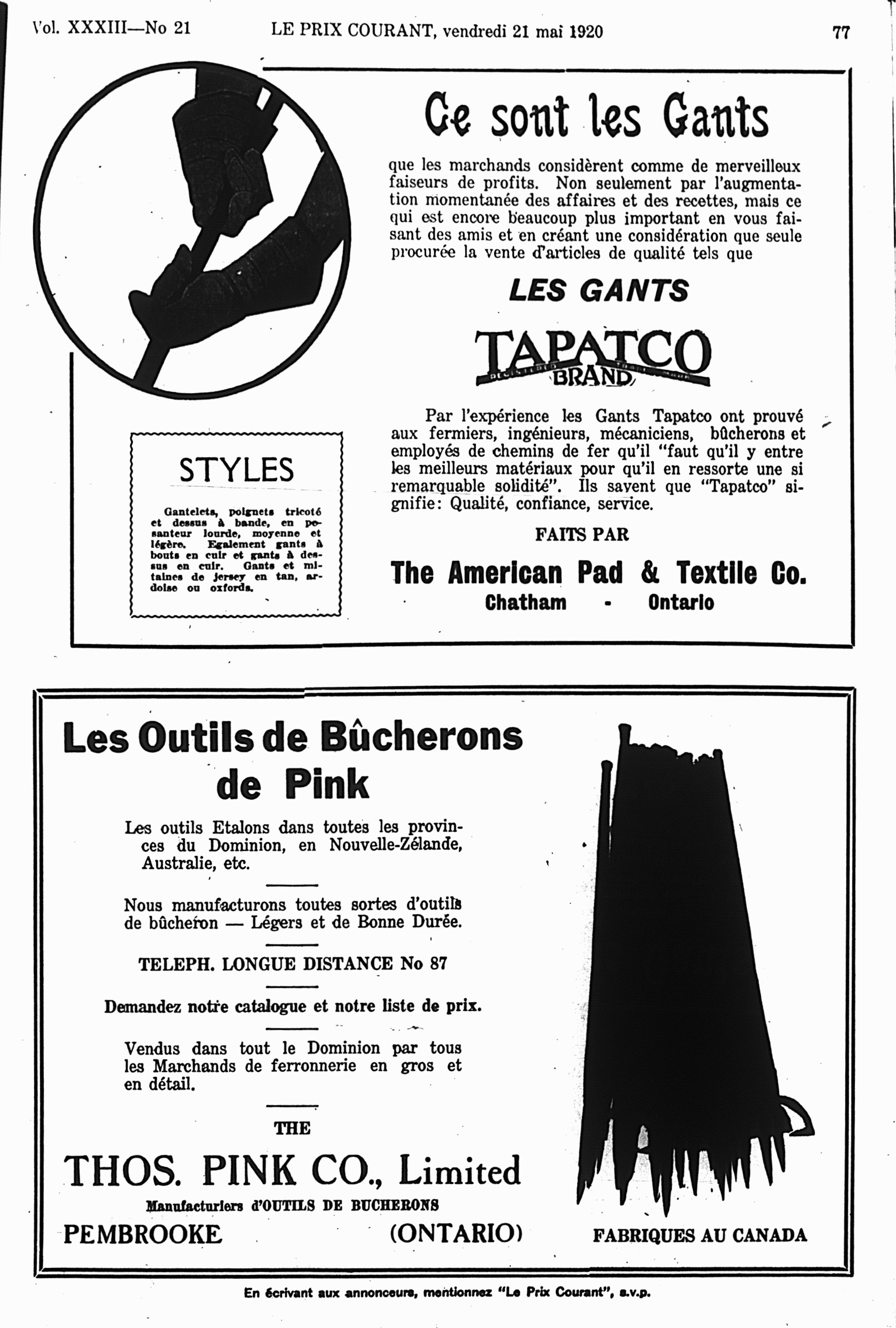 Le prix courant : Vol. 33, no 21 (21 mai 1920)
