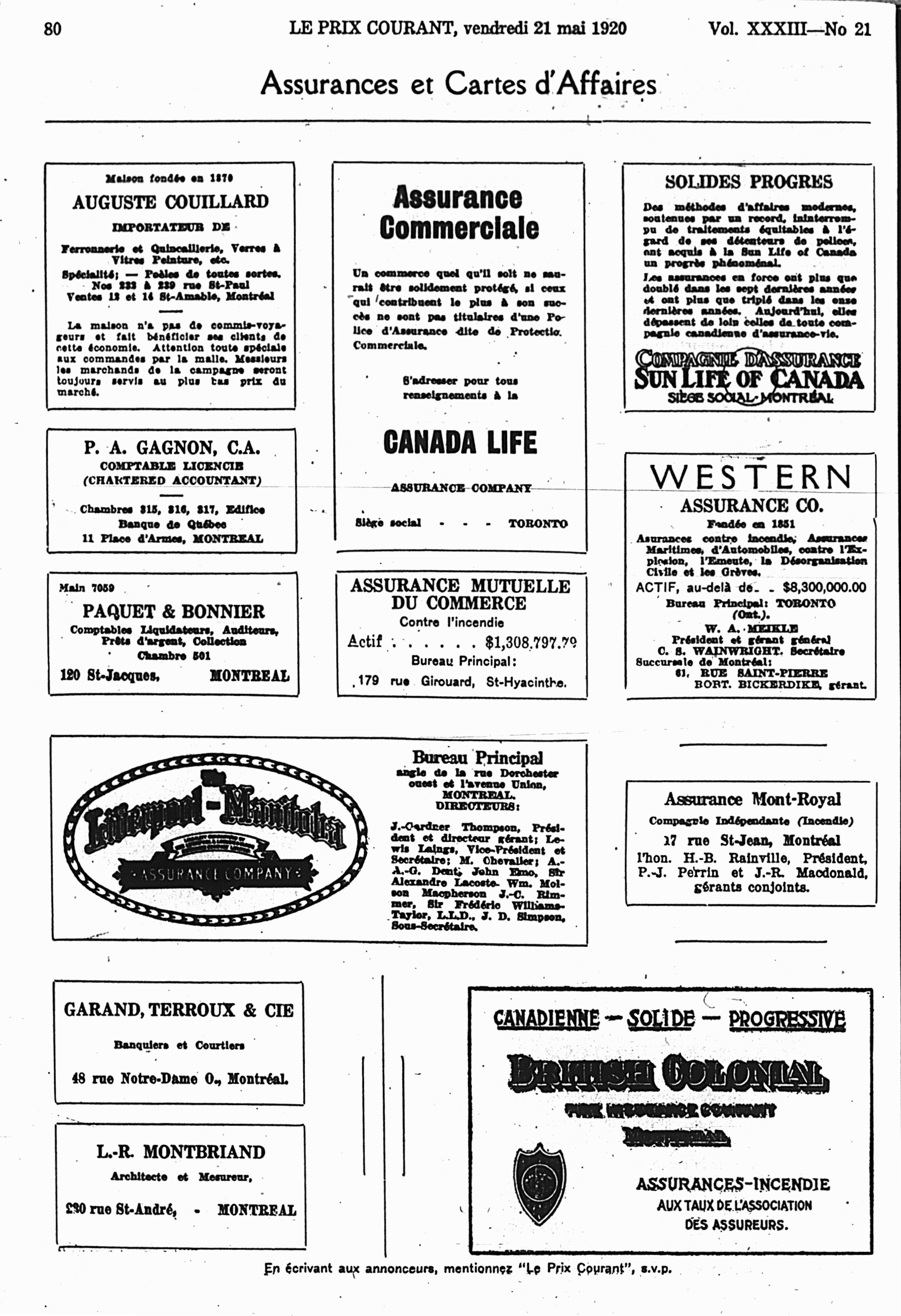 Le prix courant : Vol. 33, no 21 (21 mai 1920)