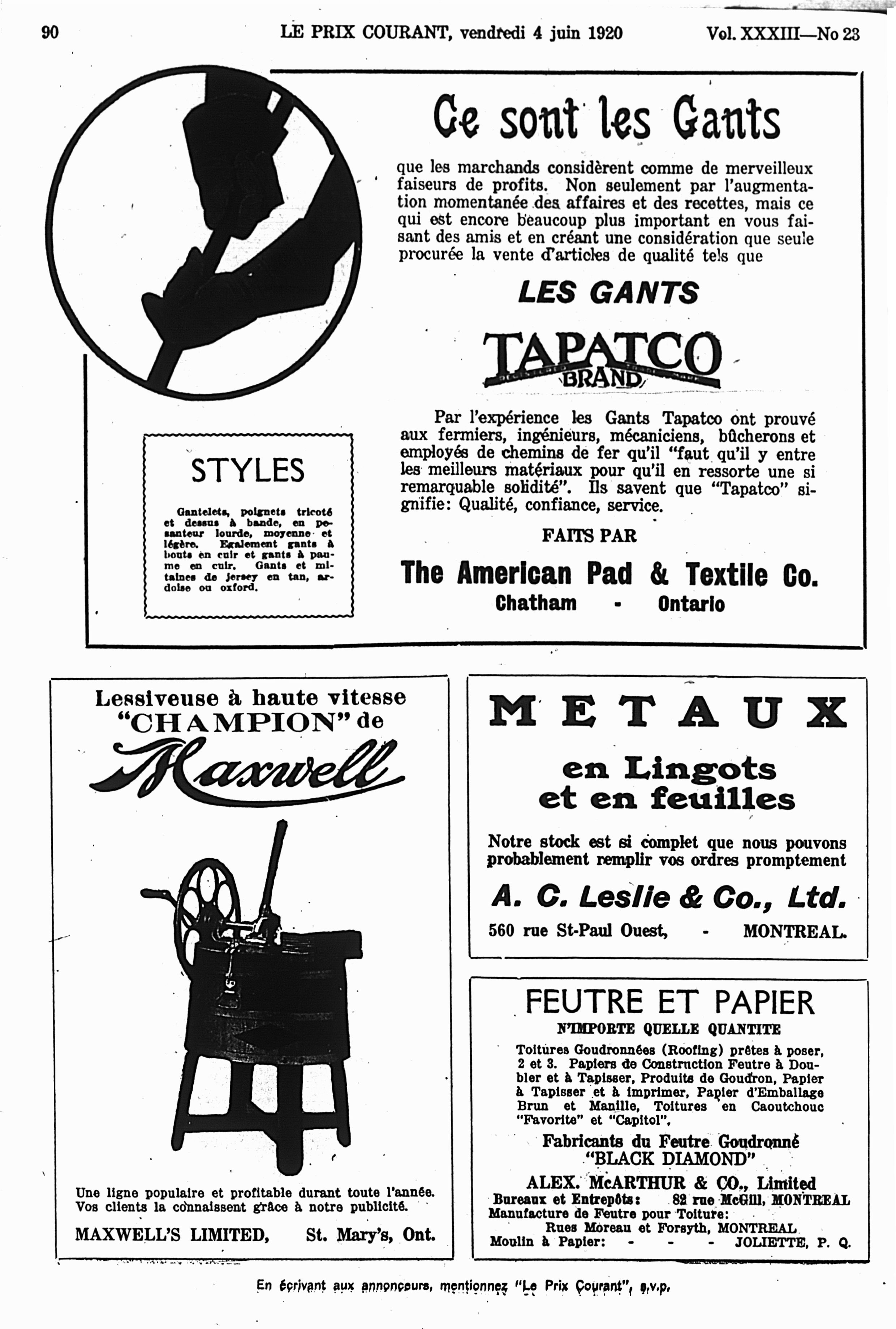 Le prix courant : Vol. 33, no 23 (4 juin 1920)