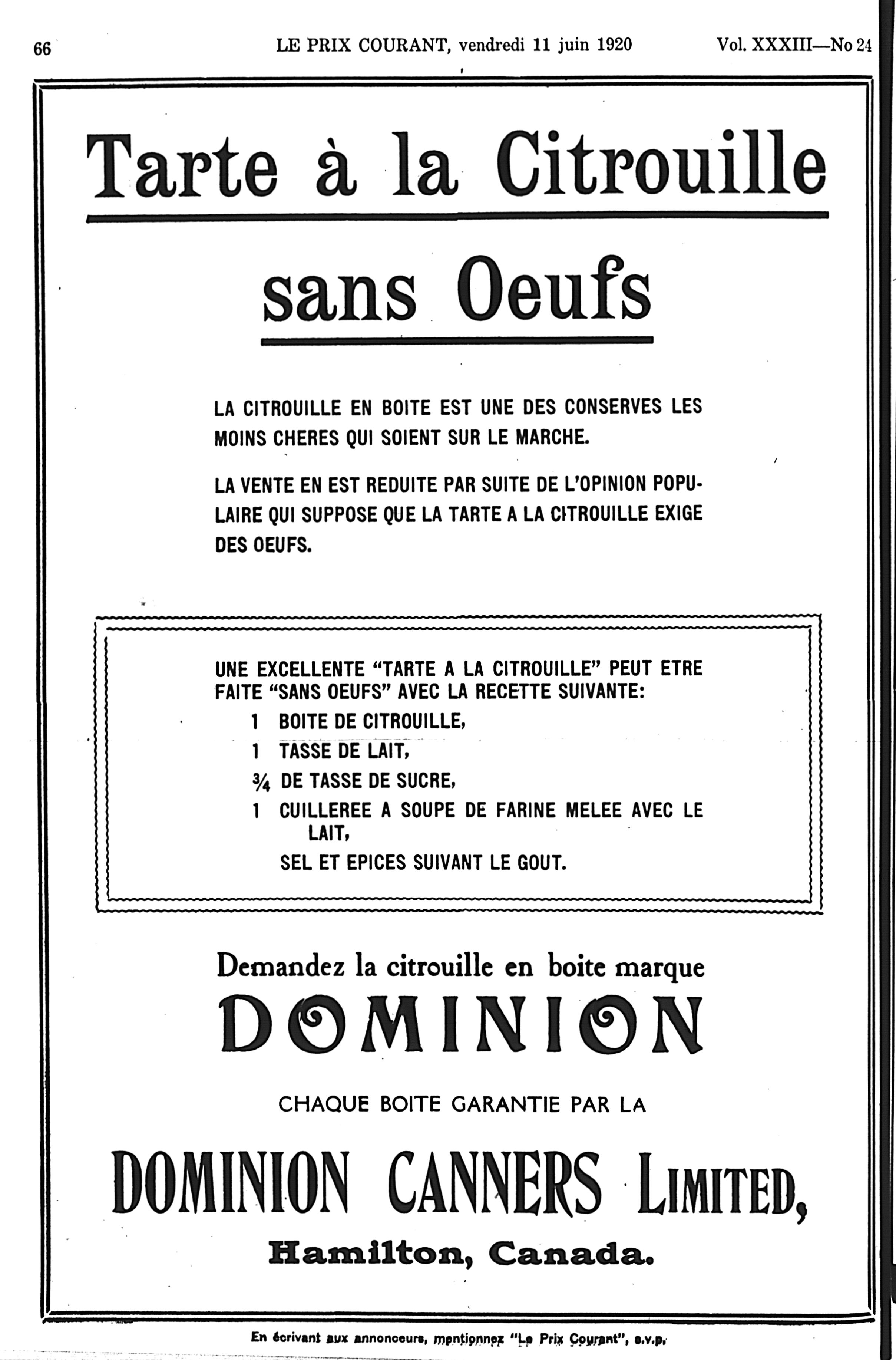 Le prix courant : Vol. 33, no 24 (11 juin 1920)