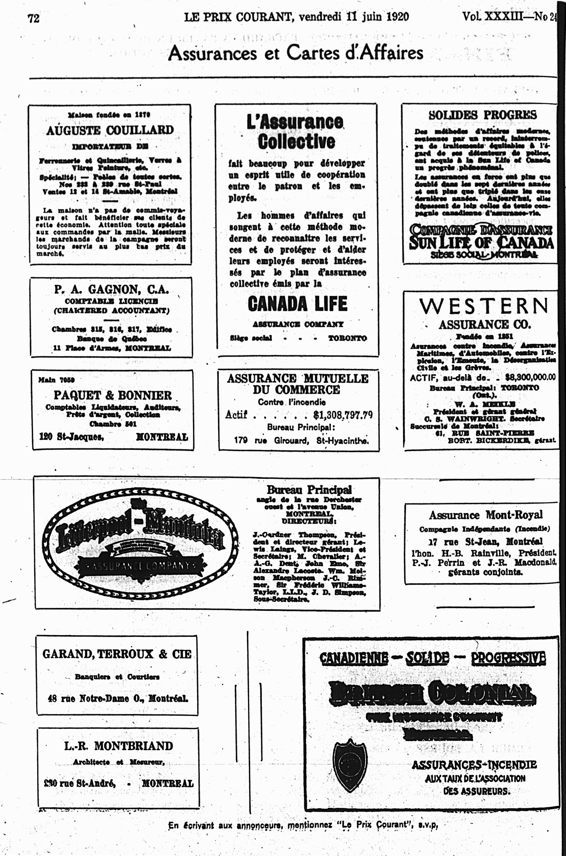 Le prix courant : Vol. 33, no 24 (11 juin 1920)