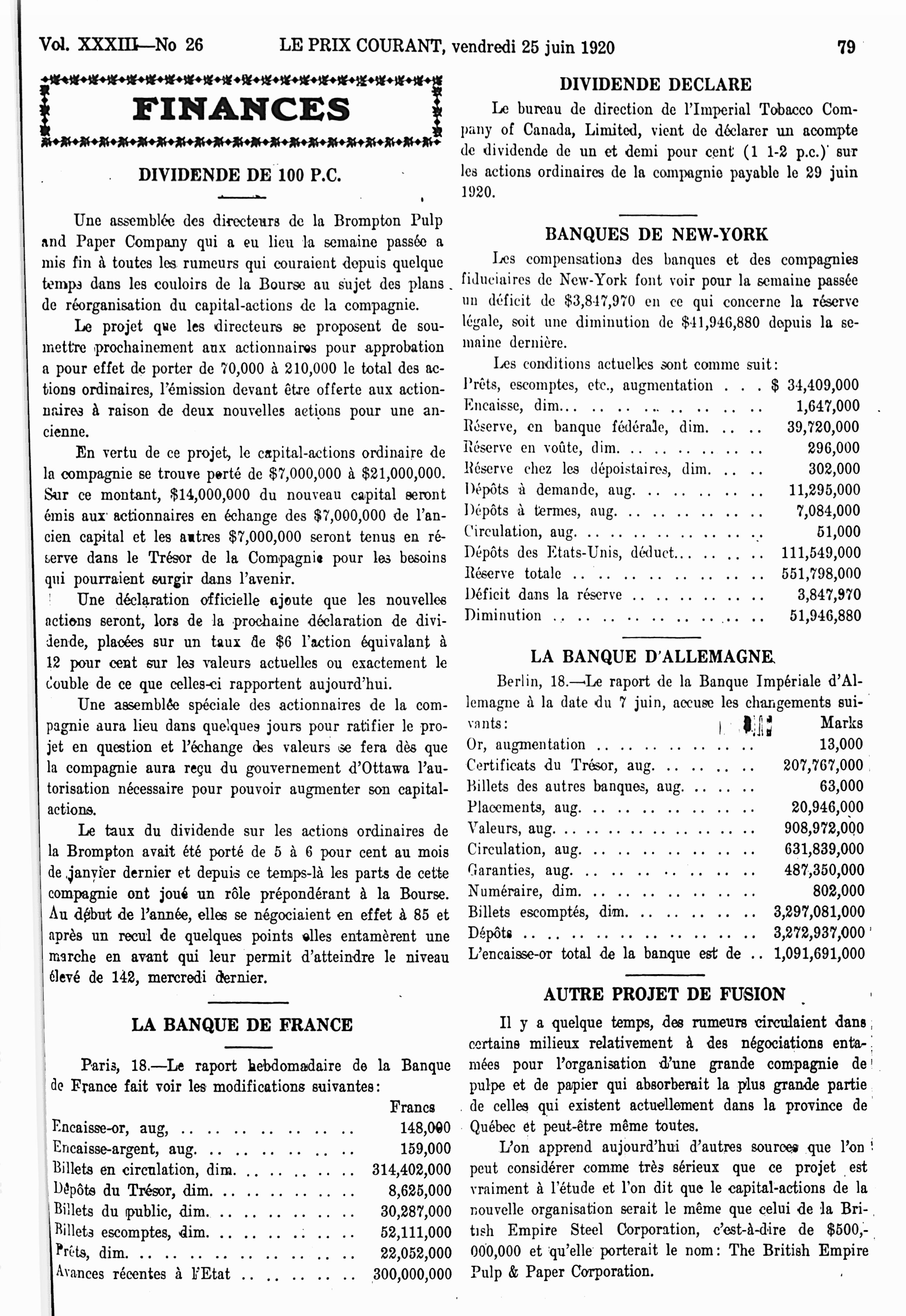 Le prix courant : Vol. 33, no 26 (25 juin 1920)
